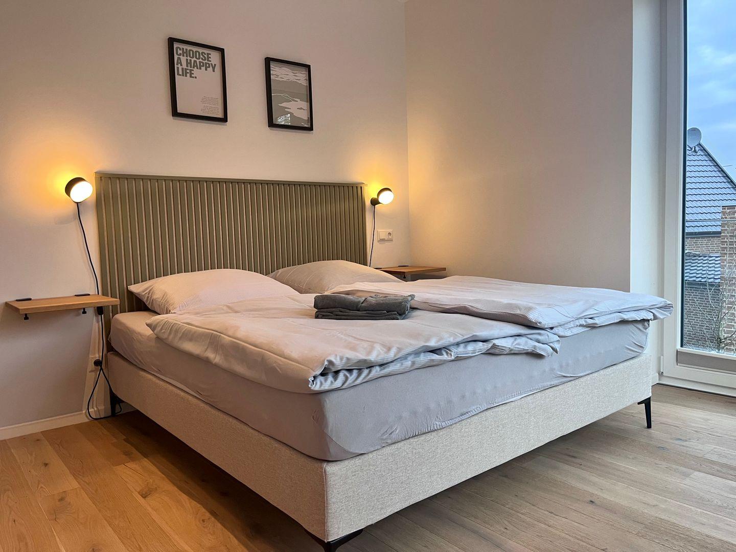Die modern ausgestattete Ferienwohnung "Flutlicht" im ersten Stock bietet Platz für bis zu fünf Personen in zwei Schlafzimmern. Freuen Sie sich auf einen Balkon, eine offene Küche mit Spülmaschine, Parkettfußboden, bodengleiche Dusche und familienfreundliche Extras wie Steckdosensicherung, Hochstuhl, Babybett und Bollerwagen. Der Sandstrand ist nur 900 Meter entfernt. Haustiere sind willkommen.