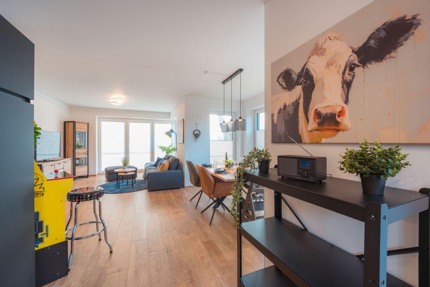 Modernes Apartment Watt'n Wunder in Dangast mit Terrasse, Garten und Nähe zum Sandstrand bietet Komfort für Familien.