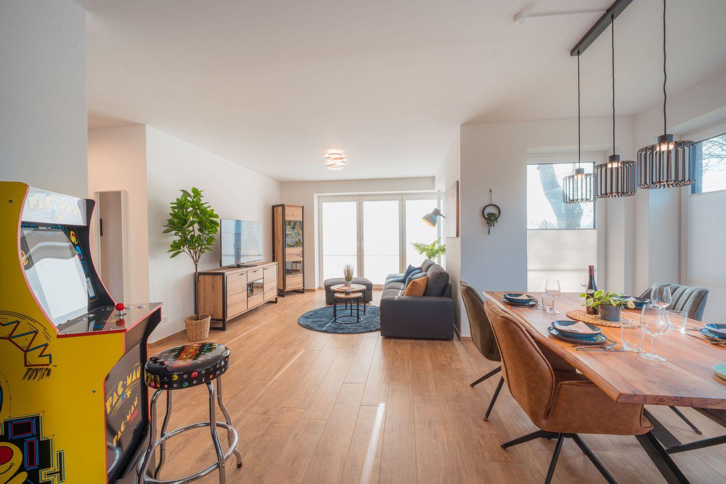 Modernes Apartment Watt'n Wunder in Dangast mit Terrasse, Garten und nur 900 m vom Sandstrand entfernt.