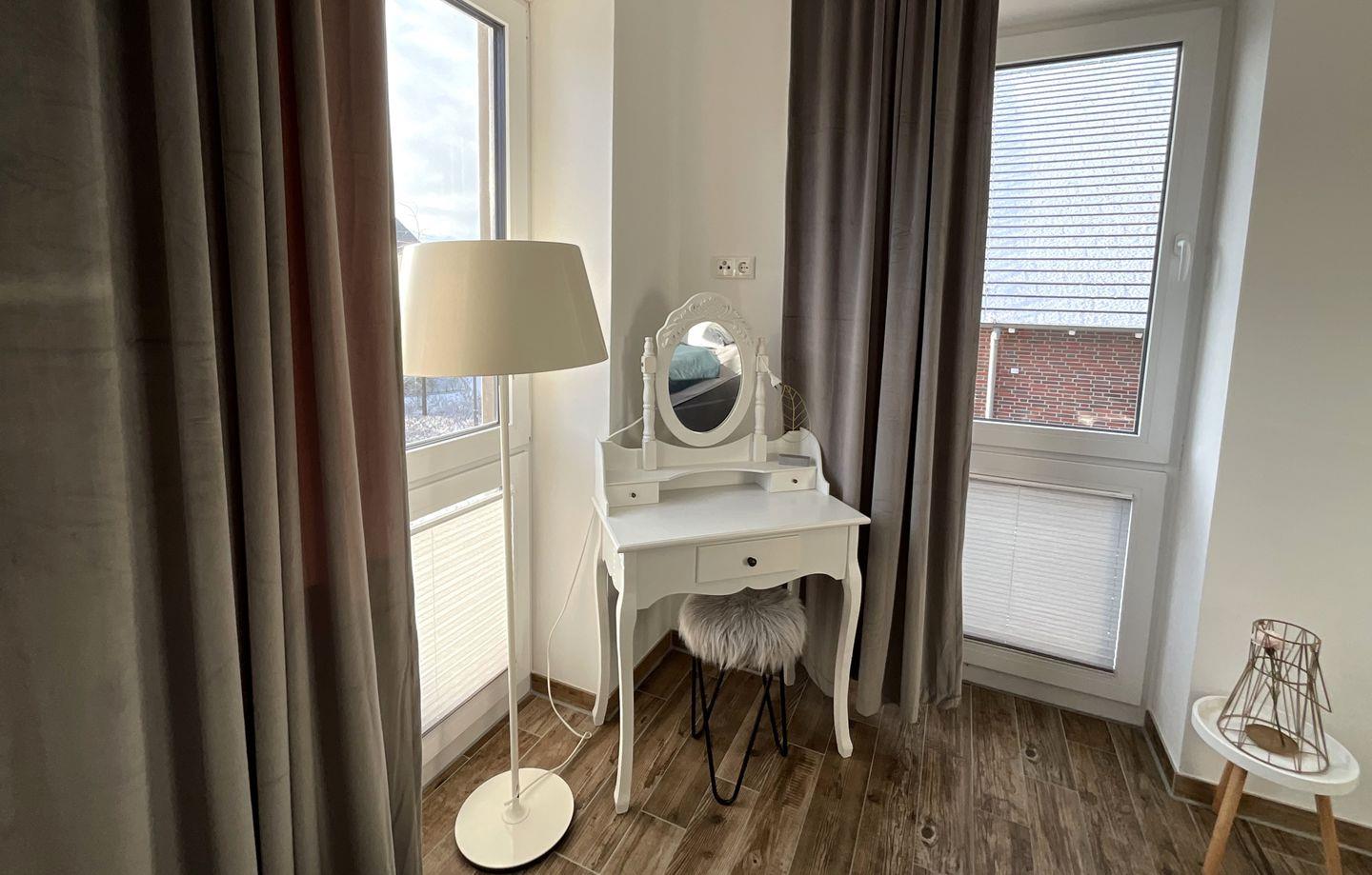2. Schlafzimmer: Boxspring-Doppelbett (140x200 cm - eine durchgängige Matratze), Kleiderschrank, Schminktisch