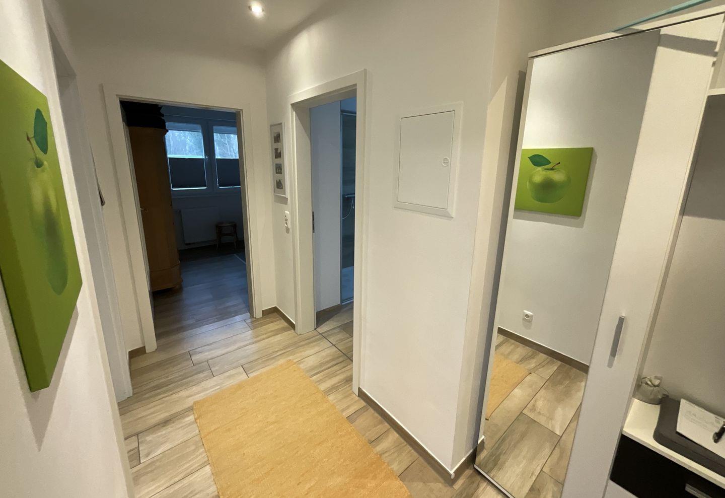 Für erholsame Nächte stehen Ihnen 2 Schlafzimmer zur Verfügung. Das Badezimmer ist mit einer bodengleichen Dusche (1), WC, Waschbecken, Spiegel und Fenster ausgestattet. Ein Haartrockner gehört ebenfalls zur Ausstattung.