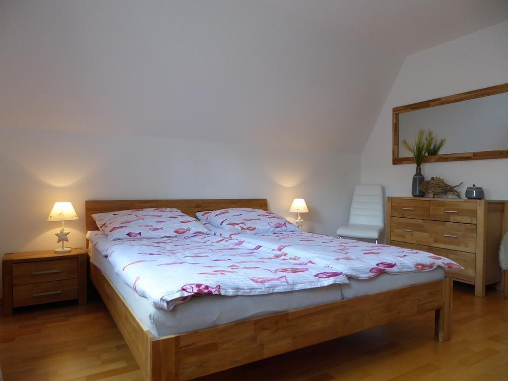 Die 2 Schlafzimmer im 1. OG sind jeweils mit einem 1,80 m breitem Doppelbett ausgestattet. Ein Schlafzimmer verfügt über einen Flatscreen-TV. Im 2. OG befindet sich das dritte Schlafzimmer mit 2 Einzelbetten.