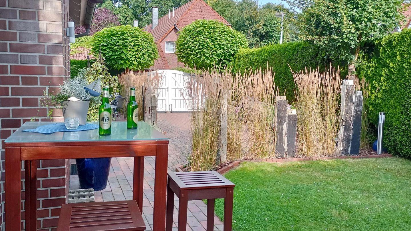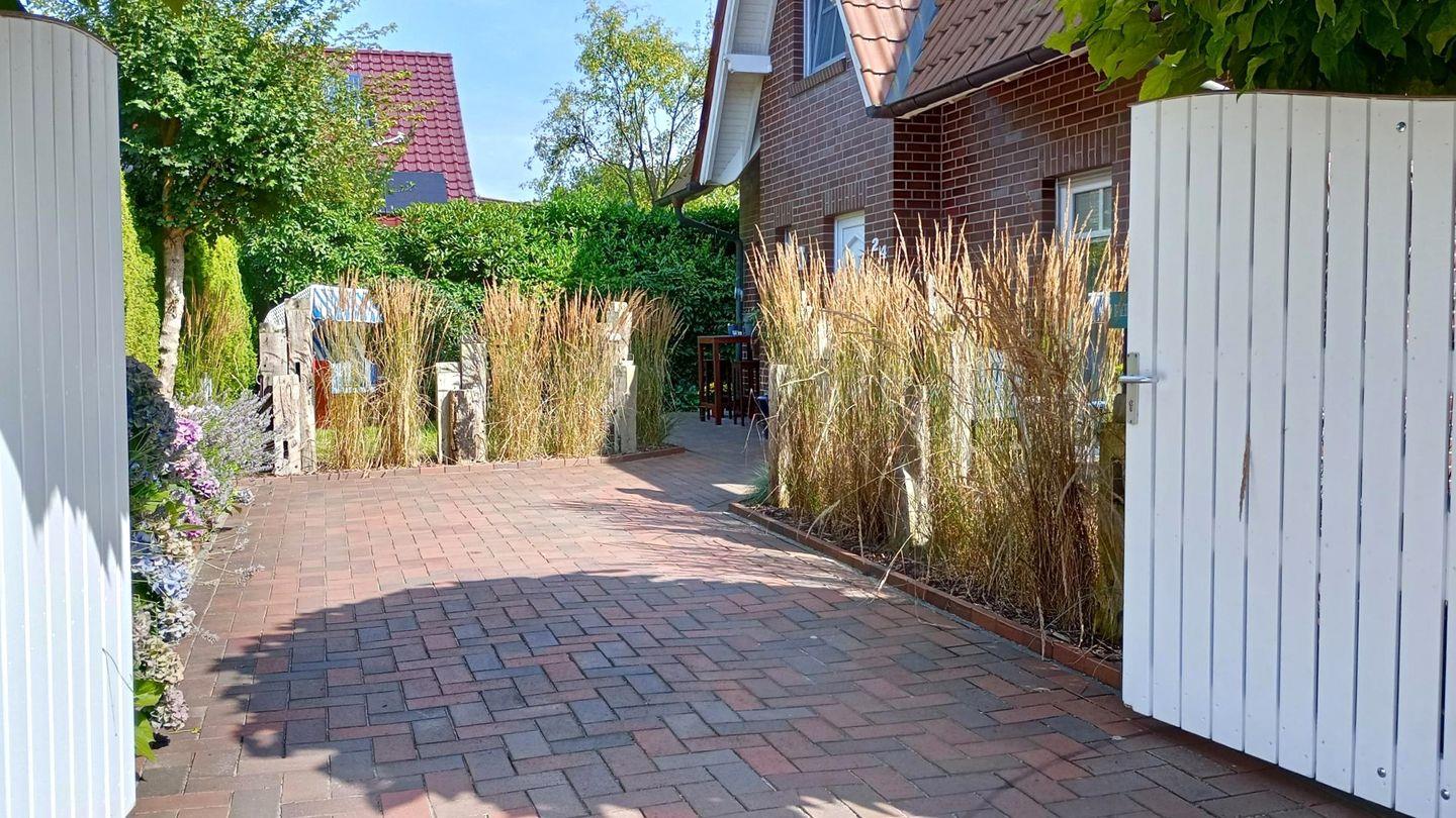 Das Ferienhaus Pier 24 in Dangast bietet maritimen Komfort und Gartenblick für einen erholsamen Nordseeurlaub.