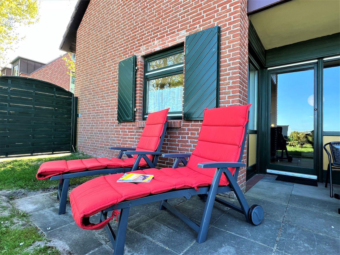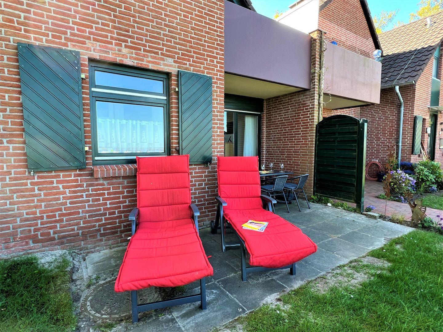 Auf der Terrasse mit zusätzlicher Rasenfläche kann man sich sehr gut entspannen und erholen. Nicht zu vergessen: der direkte Blick auf den Jadebusen - spannende Naturschauspiele zu jeder Jahreszeit...