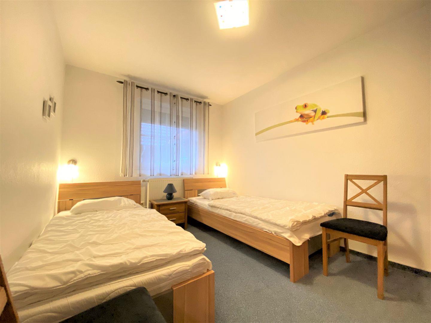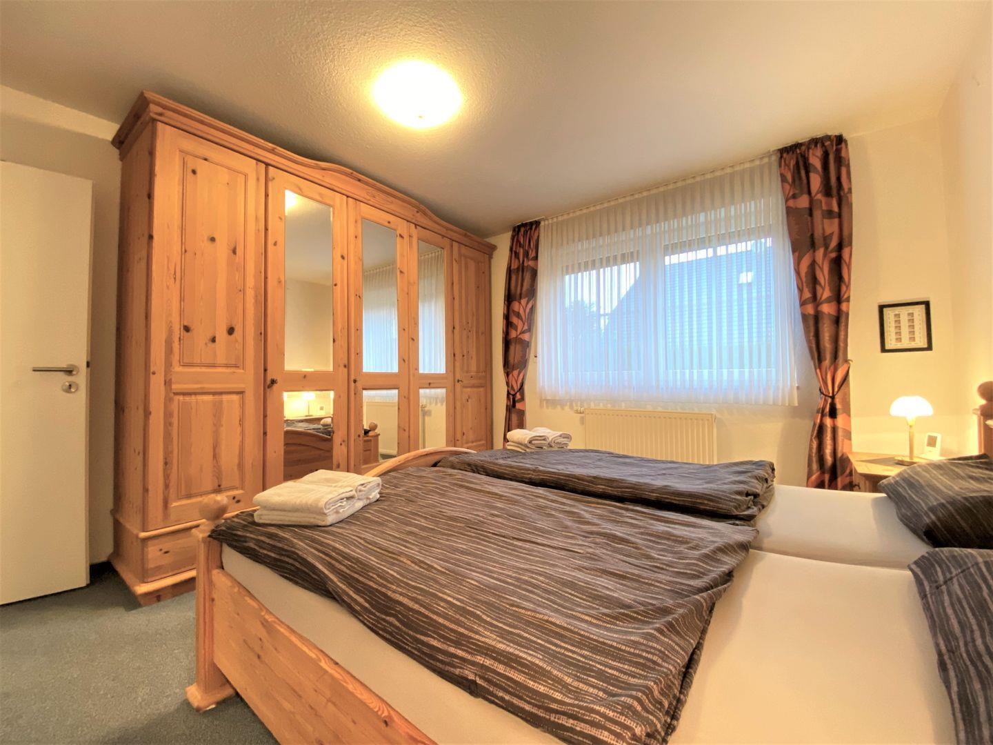 Es befindet sich zwei schöne Schlafzimmer mit jeweils einem Kleiderschrank in dieser Wohnung (1 x Ehebett, 2 x Einzelbetten).