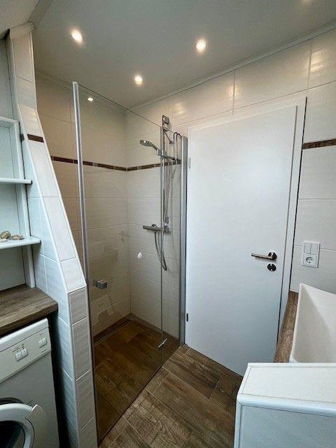 Oben geht es in die beiden Schlafzimmer für die Eltern mit Doppelbett und die Kinder mit zwei Einzelbetten, welche zudem ausziehbar sind. Ein Kinderreisebett ist im Haus vorhanden. Auch das Duschbad im Obergeschoss wurde komplett renoviert und mit edlen Armaturen ausgestattet!