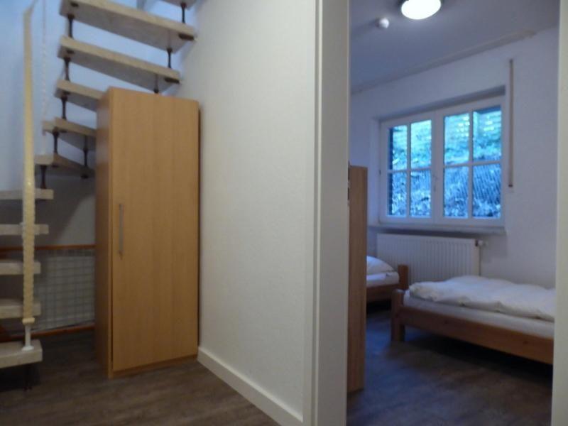 Über eine Treppe (mit Treppengitter oben) gelangen Sie in das Souterrain zu den zwei Schlafzimmern: Das Elternschlafzimmer mit Doppelbett sowie das Kinderschlafzimmer mit zwei Einzelbetten. Beide Schlafzimmer sind mit großen Kleiderschränken und angenehmer Fußbodenheizung ausgestattet. Auch diese Räume sind groß, hell und freundlich. Das große und komfortable Vollbad rundet das Angebot ab.