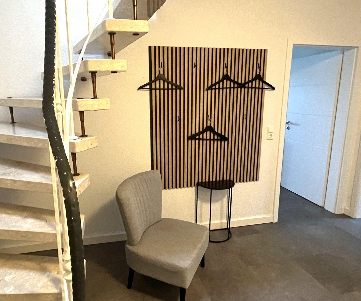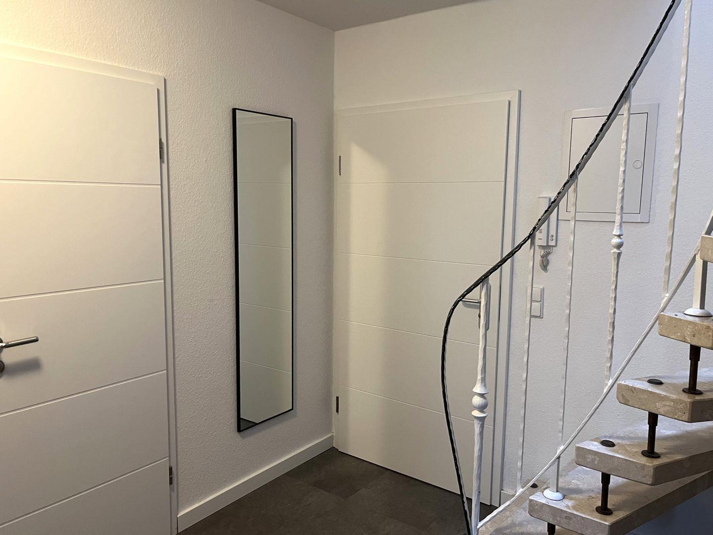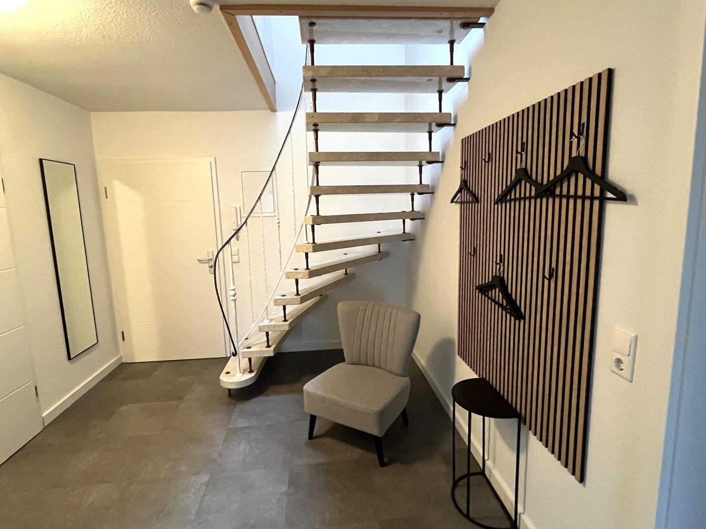Die Wohnung verfügt außerdem über zwei vollausgestattete Duschbäder, eines im ersten Geschoss und das zweite ebenfalls im ausgebauten Dachstudio.