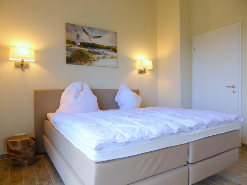 Allgemein: ca. 104m², max. 5 Personen, Luxuriös ausgestattete 3-Zimmer-Penthousewohnung mit großzügiger Dachterrasse, Sauna, Kamin, 2 Schlafzimmern, 2 Bädern und direktem Meerblick, kostenfreier Pkw-Stellplatz, Fahrradabstellraum, Nichtraucherwohnung, keine Haustiere, barrierefrei, allergikergeeignet
