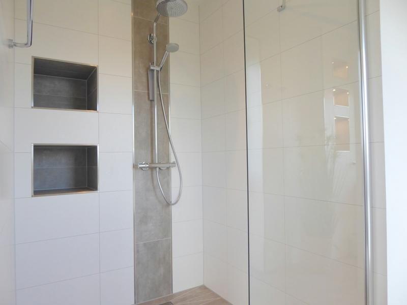 Das erste Duschbad mit begehbarer und barrierefreier Sommerregendusche plus WC bietet viel Raum und Platz.