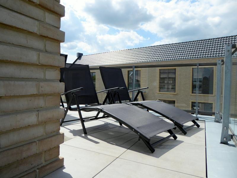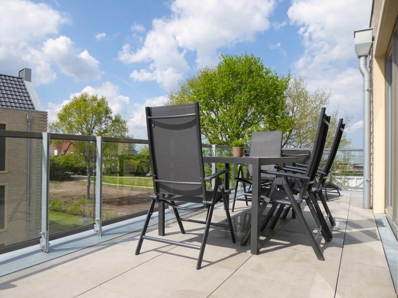 Dachterrasse: Dachterrasse mit atemberaubendem Panoramablick auf das Wattenmeer und Wilhelmshaven, ausgestattet mit Relax-Sonnenliegen und gemütlicher Sitzgarnitur