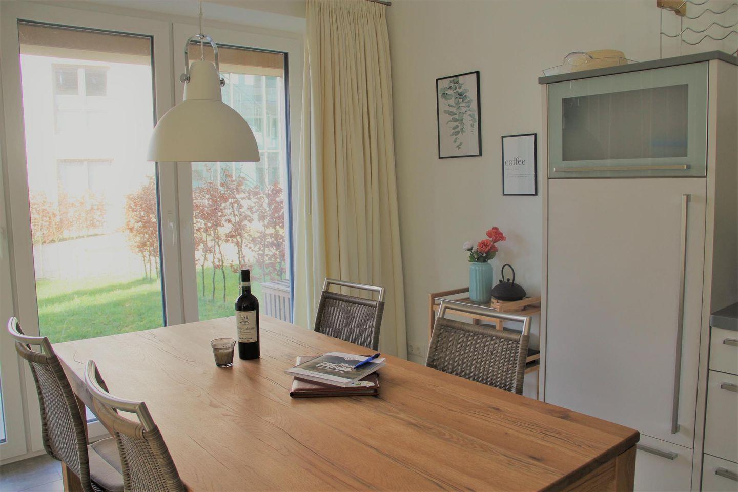 Die moderne, lichtdurchflutete Erdgeschosswohnung im Nordsee Park Dangast liegt hinter dem Deich in erster Reihe zum Meer. Sie bietet besten Wohnkomfort für bis zu sechs Erwachsene (zzgl. einem Kleinkind) sowie einen direkten Zugang zum großzügigen Garten und der Süd-West-Terrasse. Das großzügige Apartment (104 qm) liegt fernab vom Straßenverkehr und dennoch im Zentrum. Bis zum Strandweg sind es nur 50 Schritte. Direkt dahinter befindet sich das „DanGast Quellbad“ und der Strand. Drei Gehminuten westwärts sind es bis zum kleinen Einkaufsmarkt mit Bäcker.
