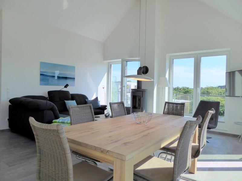 Ob draußen in der strahlenden Sonne oder drinnen vor dem knisternden Kaminofen - das Penthouse 'Kiebitz' für max. 4 Personen verwöhnt Sie zu jeder Jahreszeit!