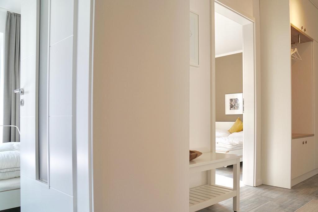 Über einen Fahrstuhl oder die Treppe gelangen Sie in Ihr Feriendomizil. Gleich links gehalten finden Sie das geräumige Duschbad mit begehbarer Sommerregendusche, Waschtisch und WC. Direkt gegenüber geht es in das erste Schlafzimmer mit Doppelbett plus großer Schrankwand inkl. Flat-TV. Die Fenster sind dank beschichteter Vorhänge schnell und einfach zu verdunkeln.