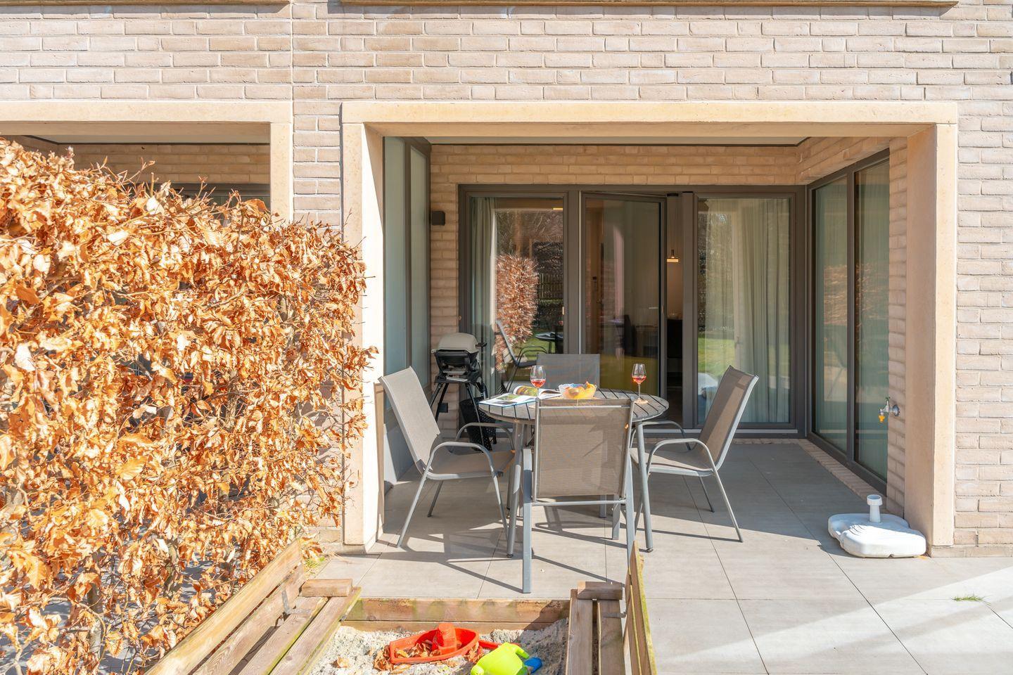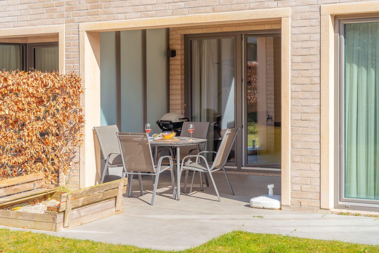 Aufteilung-Zimmer: 1 Wohn-Essbereich, 1 Schlafzimmer, 1 Badezimmer, 1 Terrasse, Rasenfläche