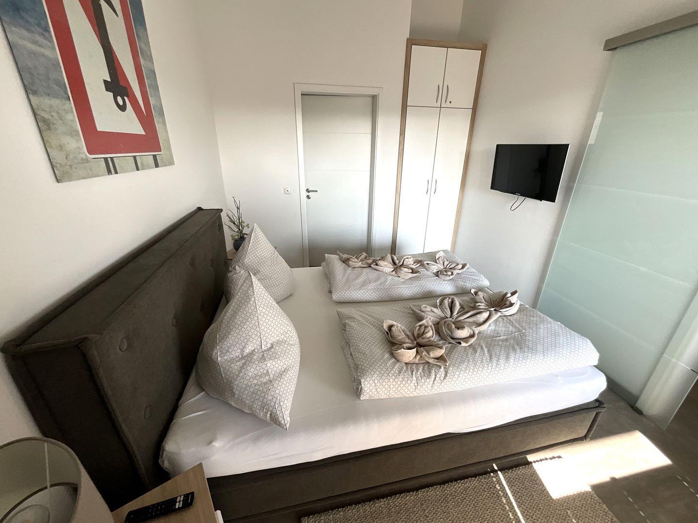 Schlafzimmer: Doppel-Boxspringbett der Marke Rolf Benz (Maße: 160 x 200 cm), Nachttische, Kleiderschrank, Flachbildfernseher