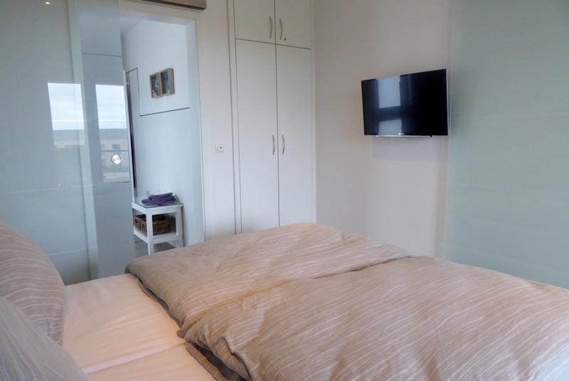 Über den Wohn-Essbereich gelangen Sie in Ihr helles Master-Schlafzimmer. Das Schlafzimmer mit komfortablem Doppelbett und Kleiderschrank garantiert angenehme Träume. Von hier aus können Sie ebenfalls direkt auf den großen Balkon gelangen.
