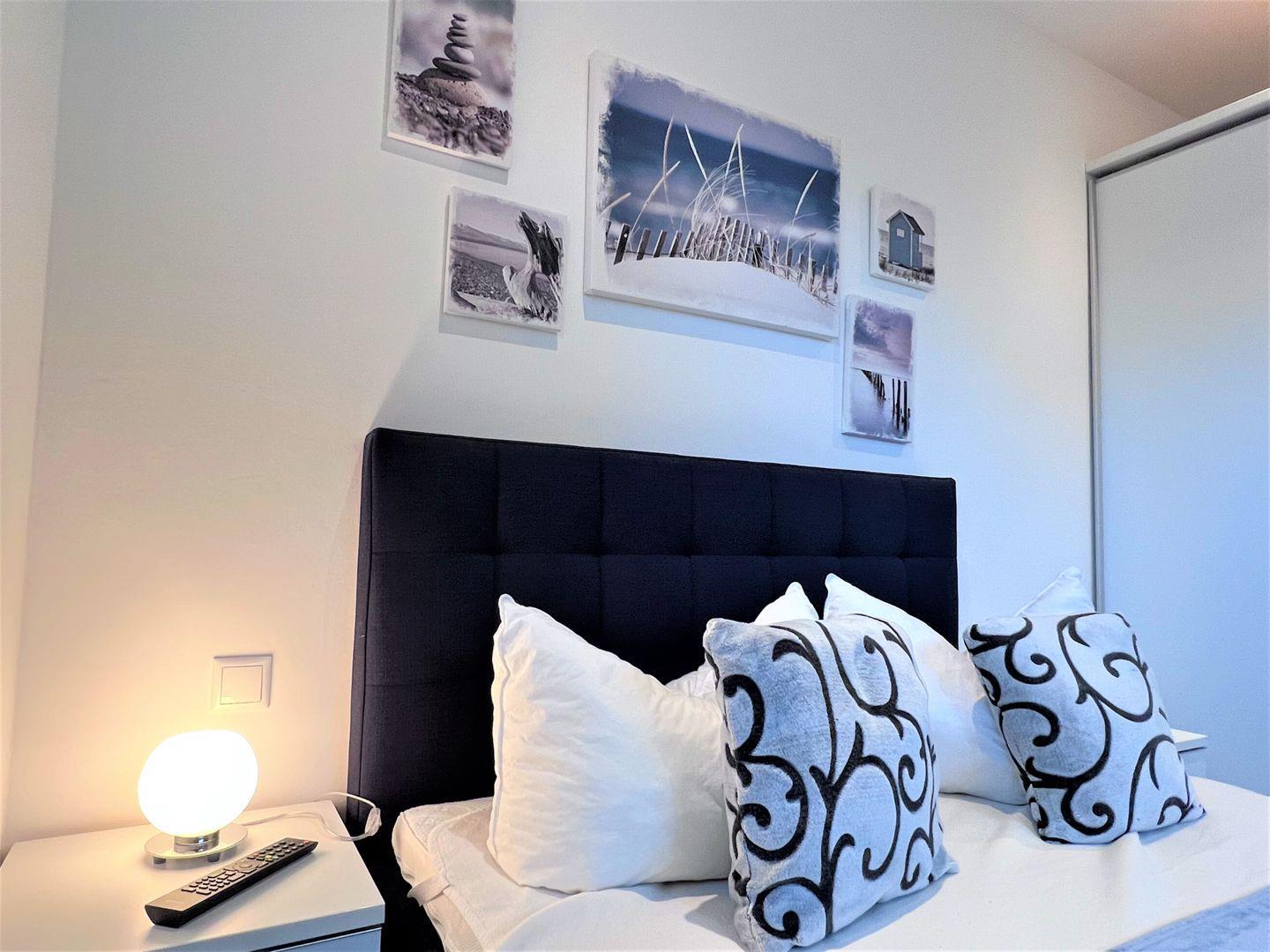 Im 2. Schlafzimmer erwarten sie gleichsam ein Boxspringbett und ein Schrank mit genügend Stauraum. Auch hier sorgt ein Flachbildfernseher für Unterhaltung.