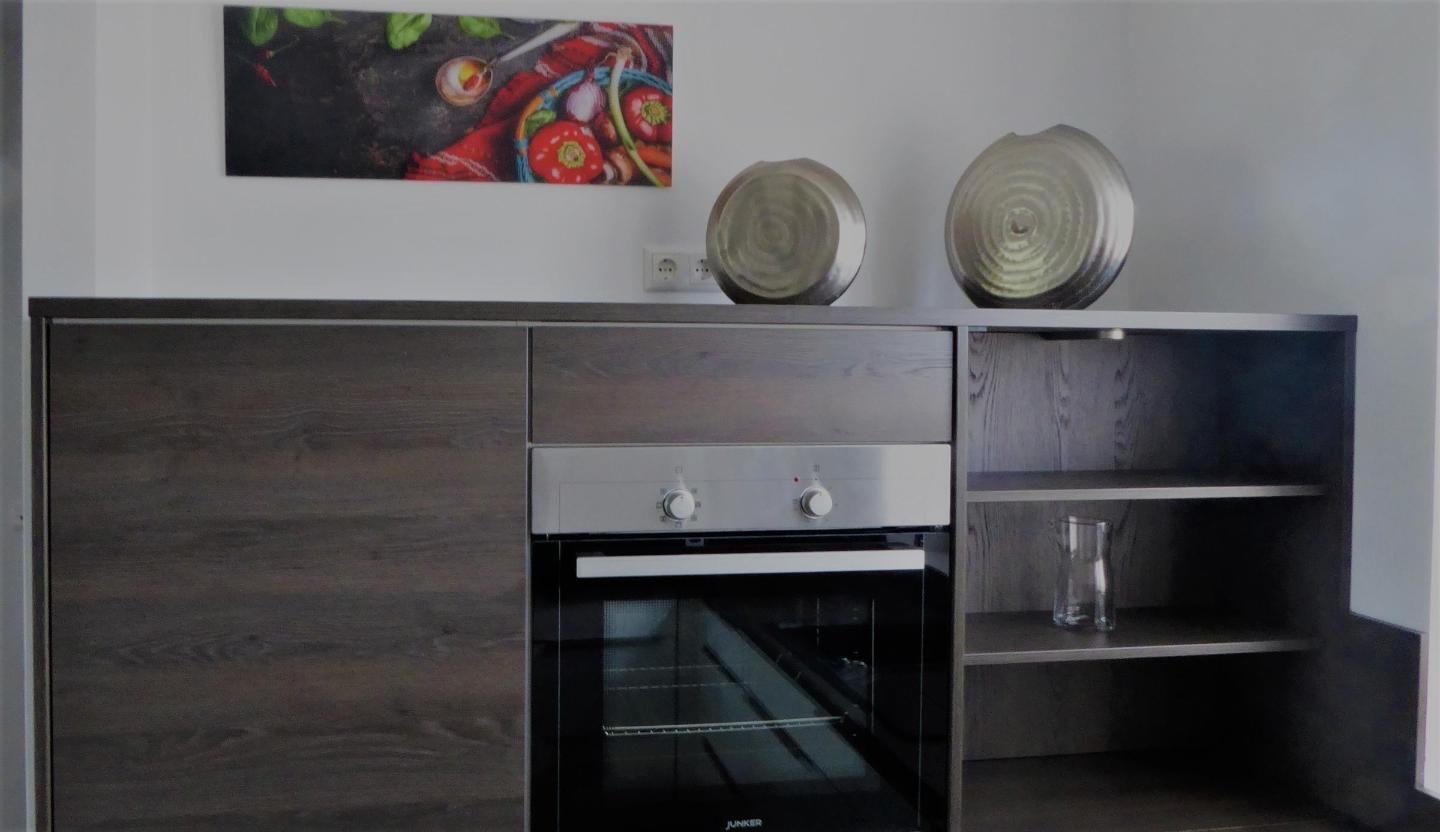 Küche und Haushalt: Einbauküche, Kühlschrank mit Gefrierfach, 4-Zonen Cerankochfeld, Backofen, Dunstabzugshaube, Mikrowelle, Geschirrspüler, Kaffeefiltermaschine + Kapselmaschine, Toaster, Wasserkocher, hochwertiges Geschirr und Besteck