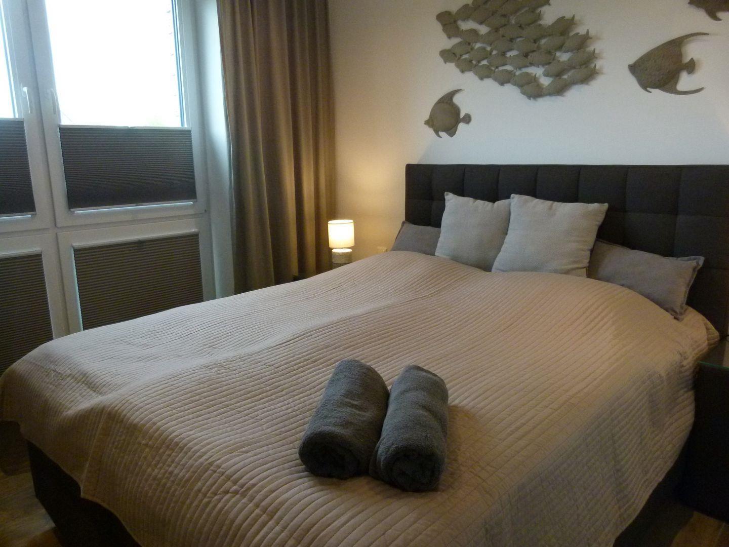 Schlafzimmer 1: Doppel-Boxspringbett (Maße: 180 x 200 cm),Nachttische, Kleiderschrank