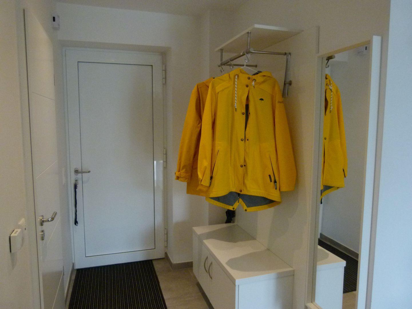 Haushalt: Staubsauger, diverse Reinigungsutensilien, Wäscheständer (im Abstellraum im Flur), Waschmaschine, Trockner