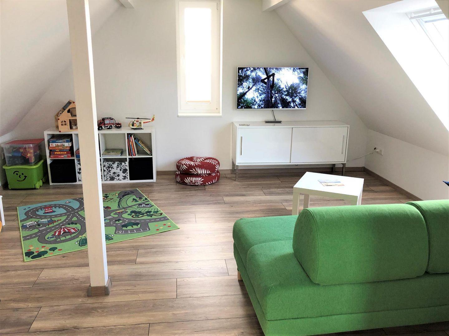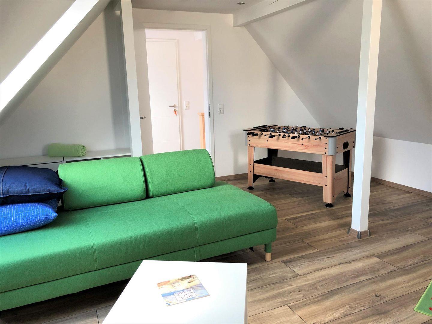 Studio im DG: 1 Schlafcouch, Flachbildfernseher, Tischkicker, diverse Spiele, Spielsachen