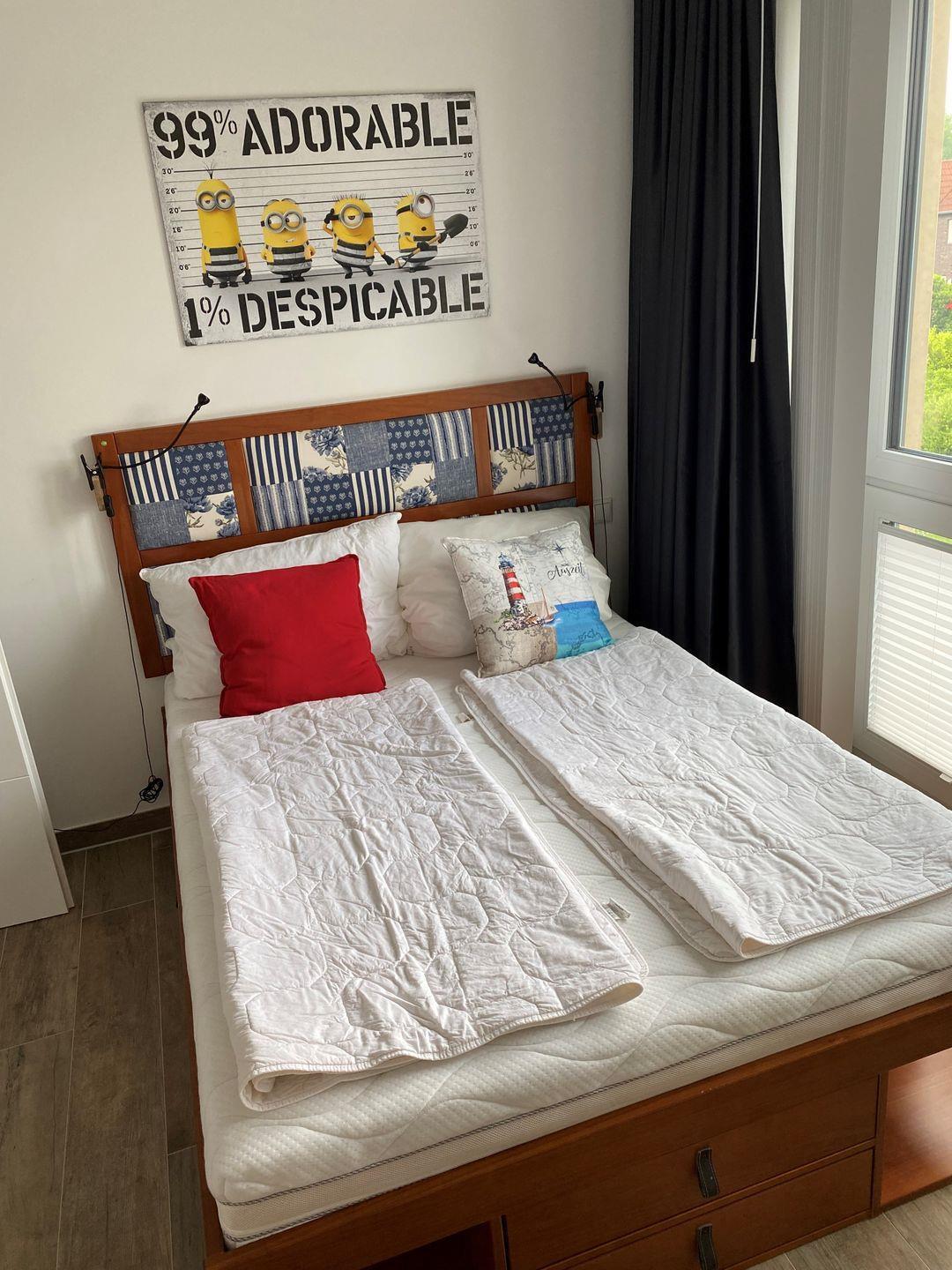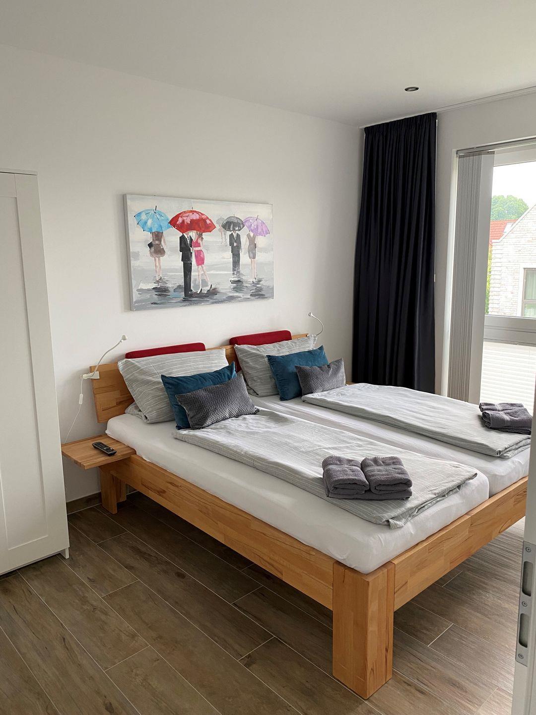Schlafzimmer 1: Doppelbett (Maße: 180 x 200 cm), Flachbildfernseher, Nachttische, Leselampen, Kleiderschrank