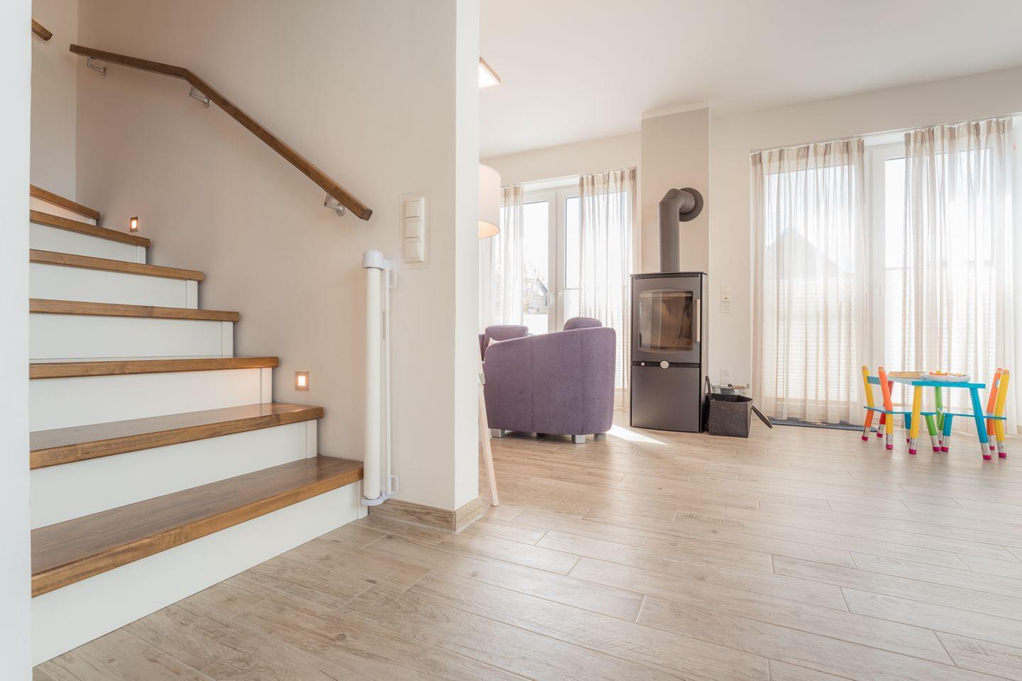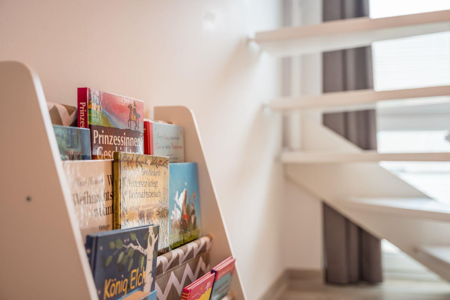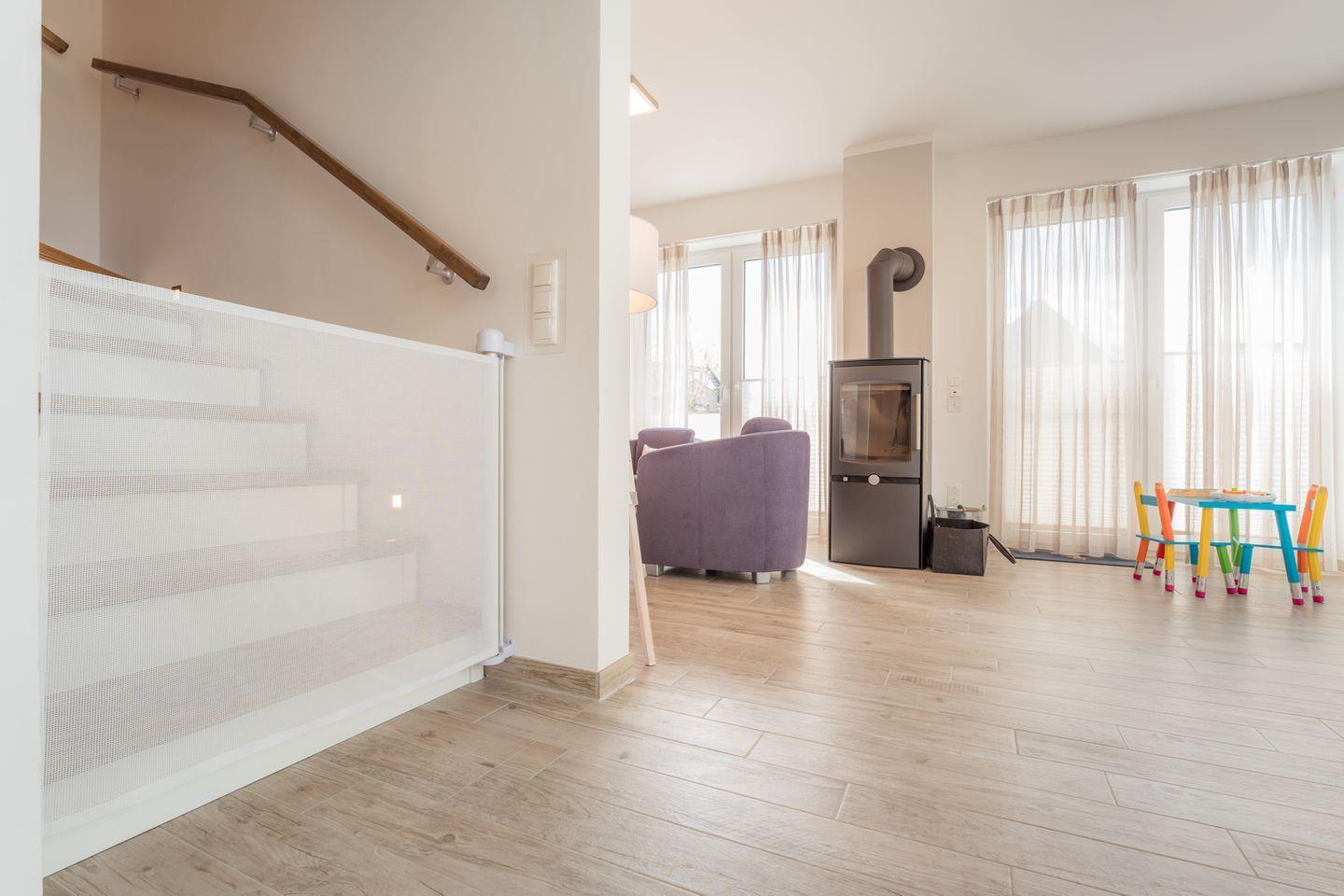 Die Treppen sind entweder mit Türen oder Treppenschutz gesichert, so dass die Kinder auch einmal unbeobachtet sicher spielen können. Alle bodentiefen Steckdosen sind mit einer Kindersicherung versehen.