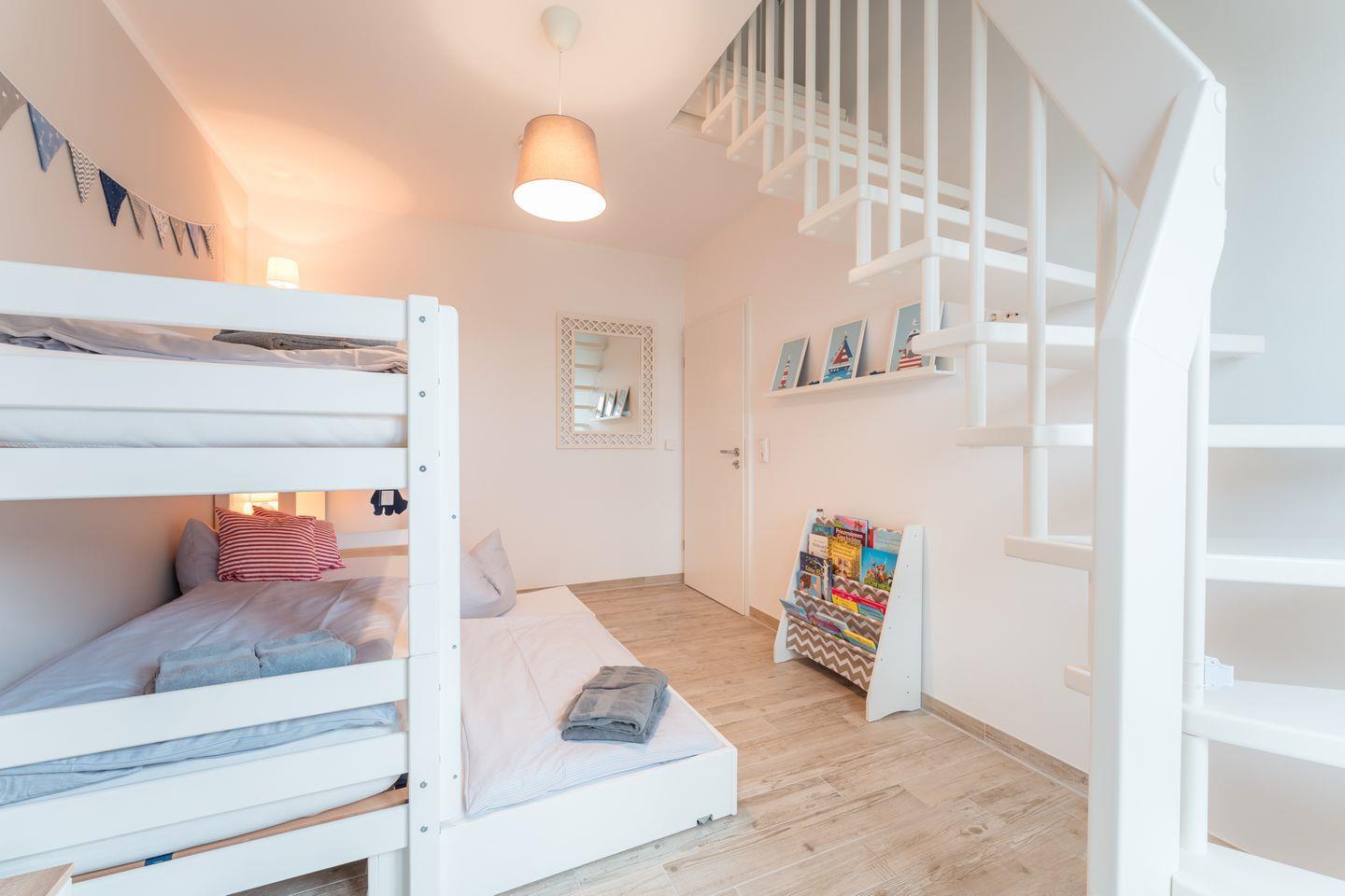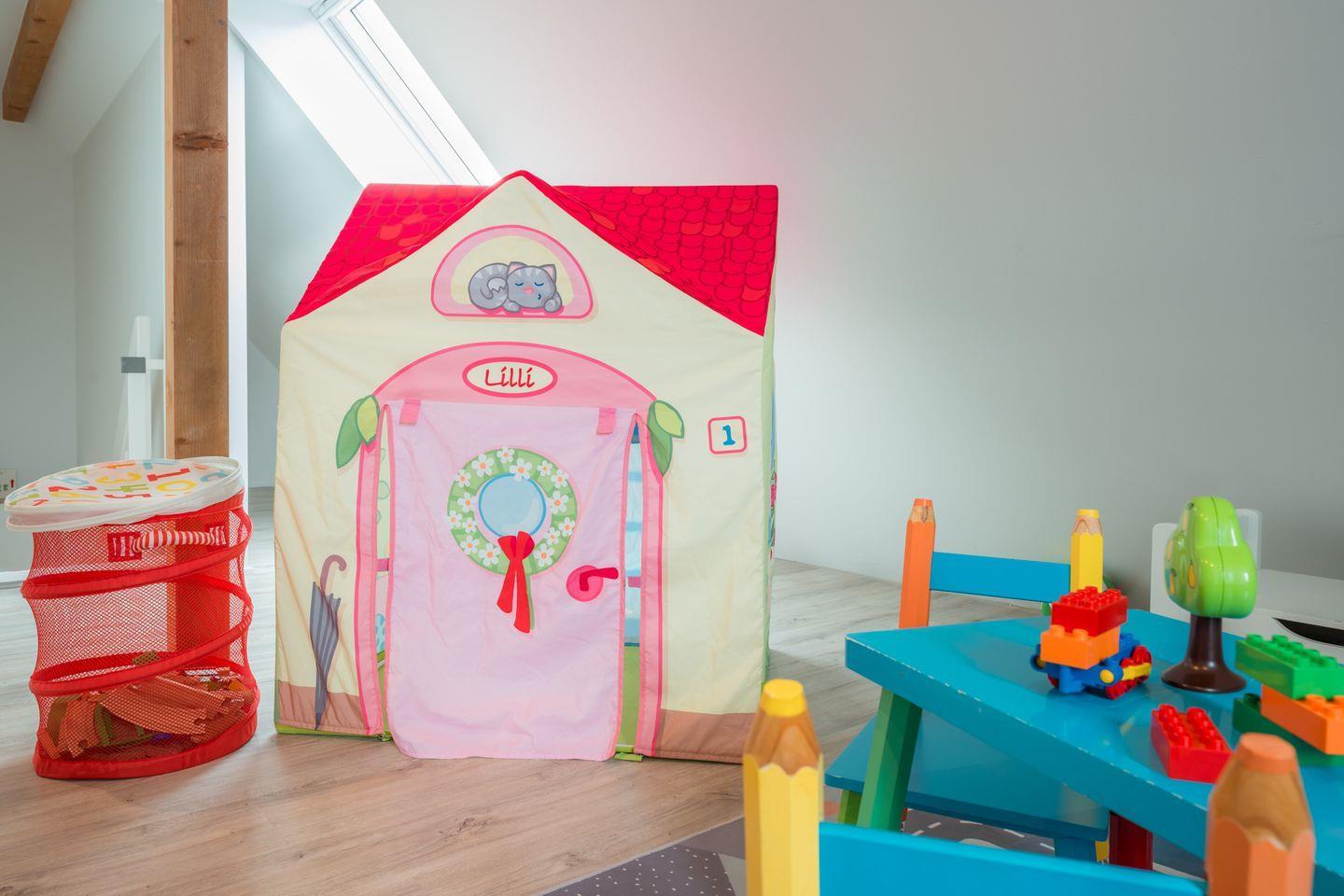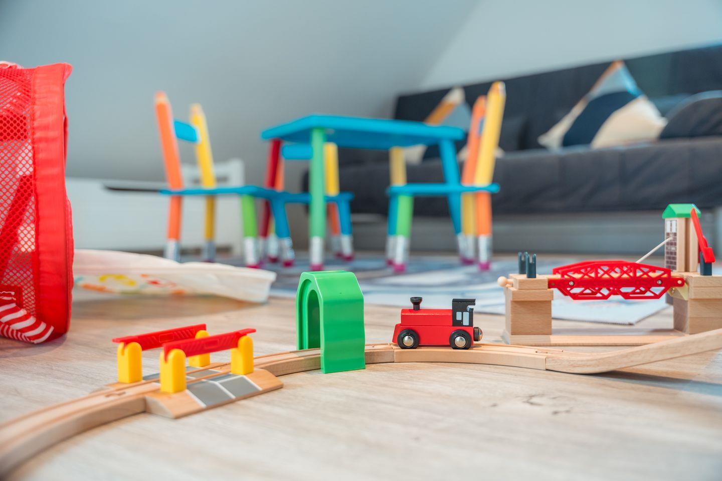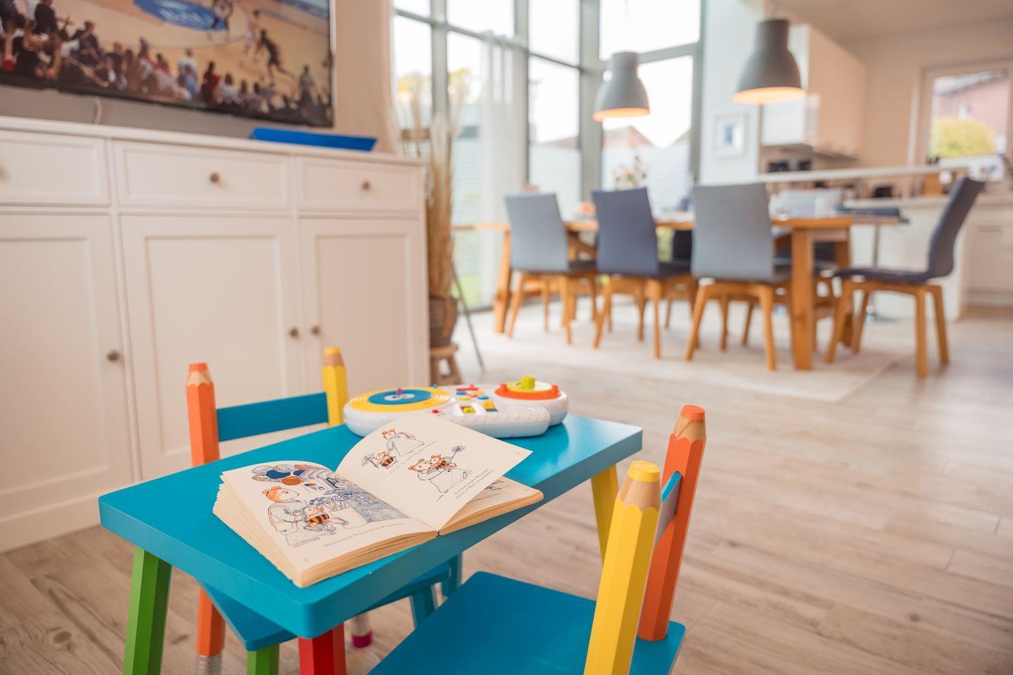 Da wir selbst glückliche Eltern von einem Kind sind, haben wir bei der Einrichtung unseres Ferienhauses insbesondere auch Wert auf eine sichere und kinderfreundliche Einrichtung gelegt. Für die kleinen sehr willkommenen Gäste gibt es neben dem Kinderzimmer mit einem Etagenbett (2x 90x200cm) und weiterem Ausziehbett (90x190cm) einen Spielespeicher. Dort wartet auf die kleinen Gäste unter anderem: