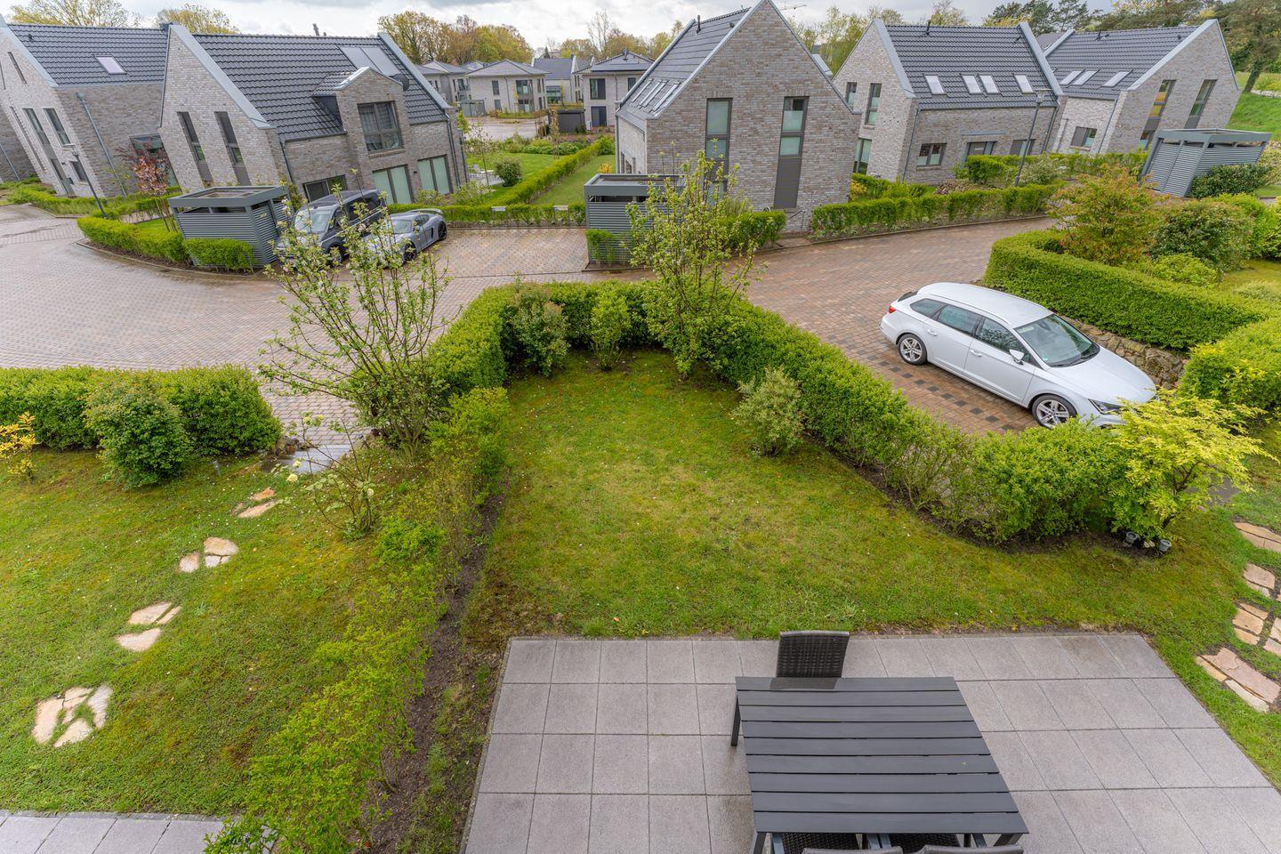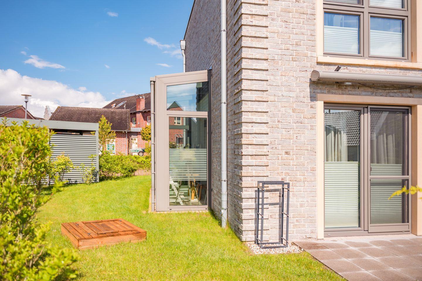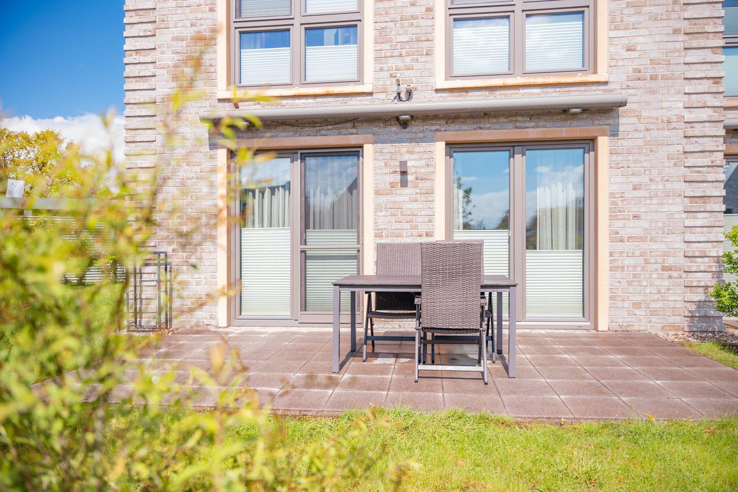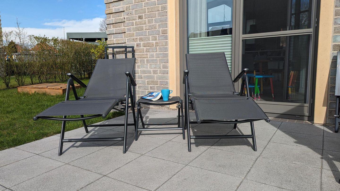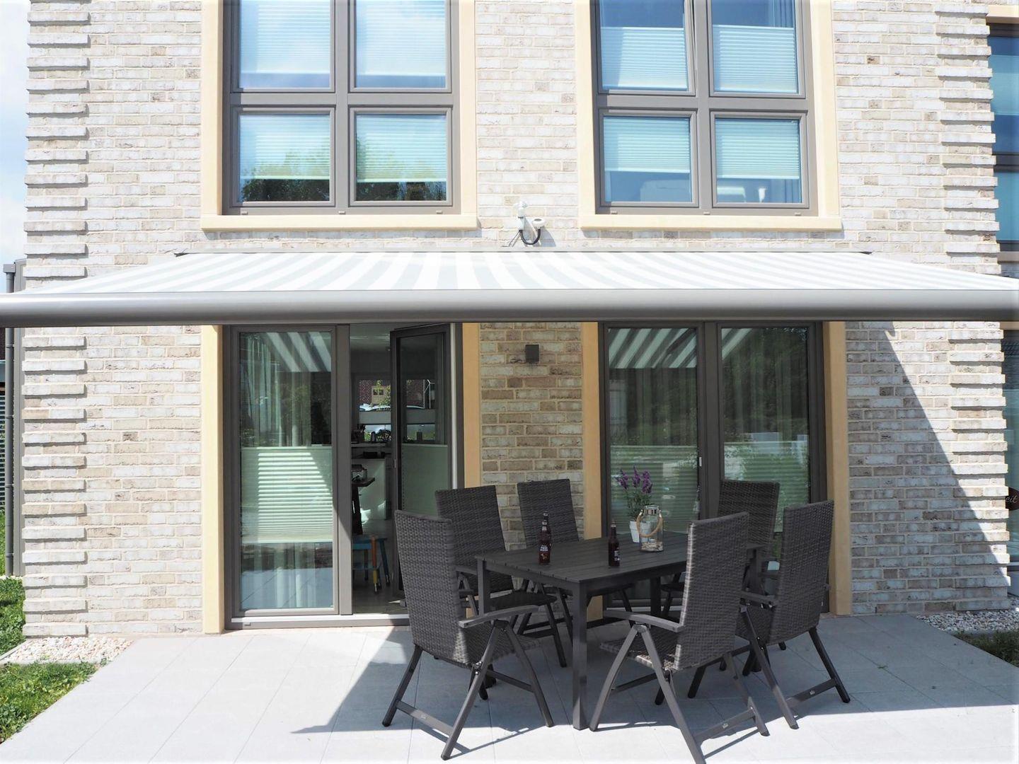 Aber auch die Erwachsenen sollen nicht zu kurz kommen. Über eine der beiden Terrassentüren erreichen Sie auch die großzügige nach Süden ausgerichtete Terrasse, die durch die Markise auch an sonnigen Tagen schattig nutzbar ist. Es stehen für Sie Tische, Stühle, Liegen und ein Grill bereit. Den Garten können Sie selbstverständlich auch nutzen. Von hier gelangen Sie über eine kleine Treppe direkt zu Ihrem Privatparkplatz. So muss Ihr Gepäck oder Ihre Einkäufe nicht weit getragen werden.
