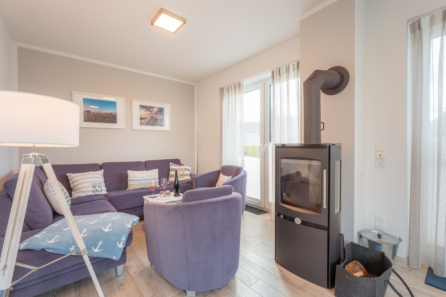 Im Erdgeschoss befinden sich der Wintergarten mit großzügigem Esstisch, die moderne vollständig ausgestattete Küche mit einladender Theke inkl. zwei Barhockern, sowie die Wohnzimmer-Ecke mit ausreichend Sitzgelegenheiten für 6 Personen inkl. eines bis zu 90-Grad schwenkbarem 52“ Smart-TV und einem heimeligen Kamin. Das Internet-Radio können Sie auch via Bluetooth mit Ihrem Handy verbinden. So können Sie auch im Urlaub Ihre Lieblingsradiosender oder von zu Hause mitgebrachte Musik hören.