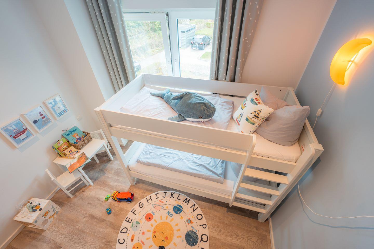 Schlafzimmer 3: Stockbett, Kleiderschrank, Flachbildfernseher