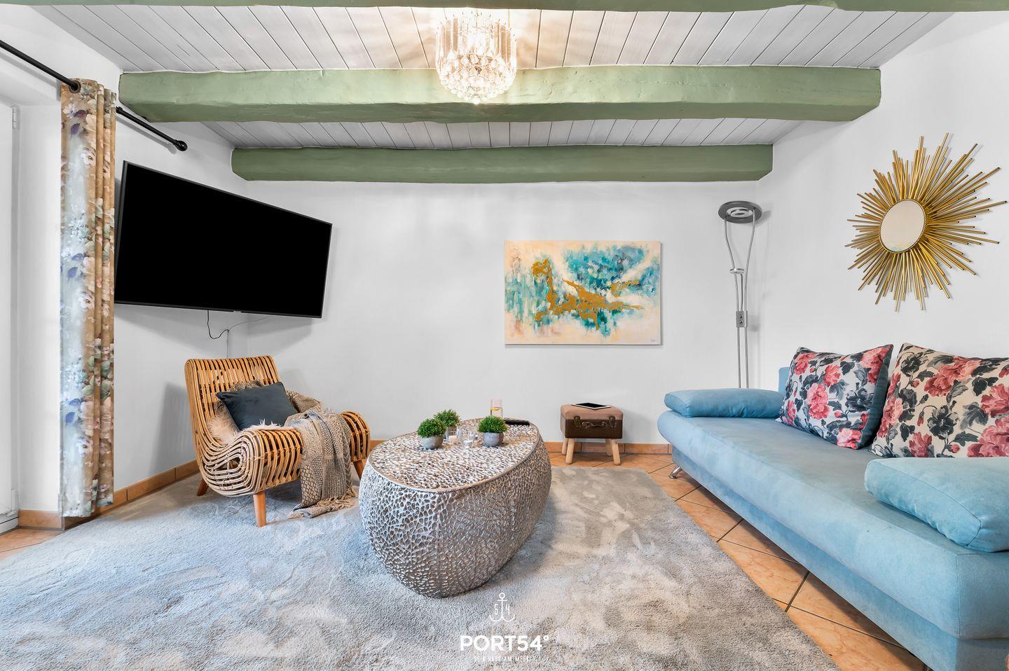 Über zwei Etagen erstreckt sich die Ferienwohnung über 64 m" und bietet somit Platz für bis zu 6 Personen.
