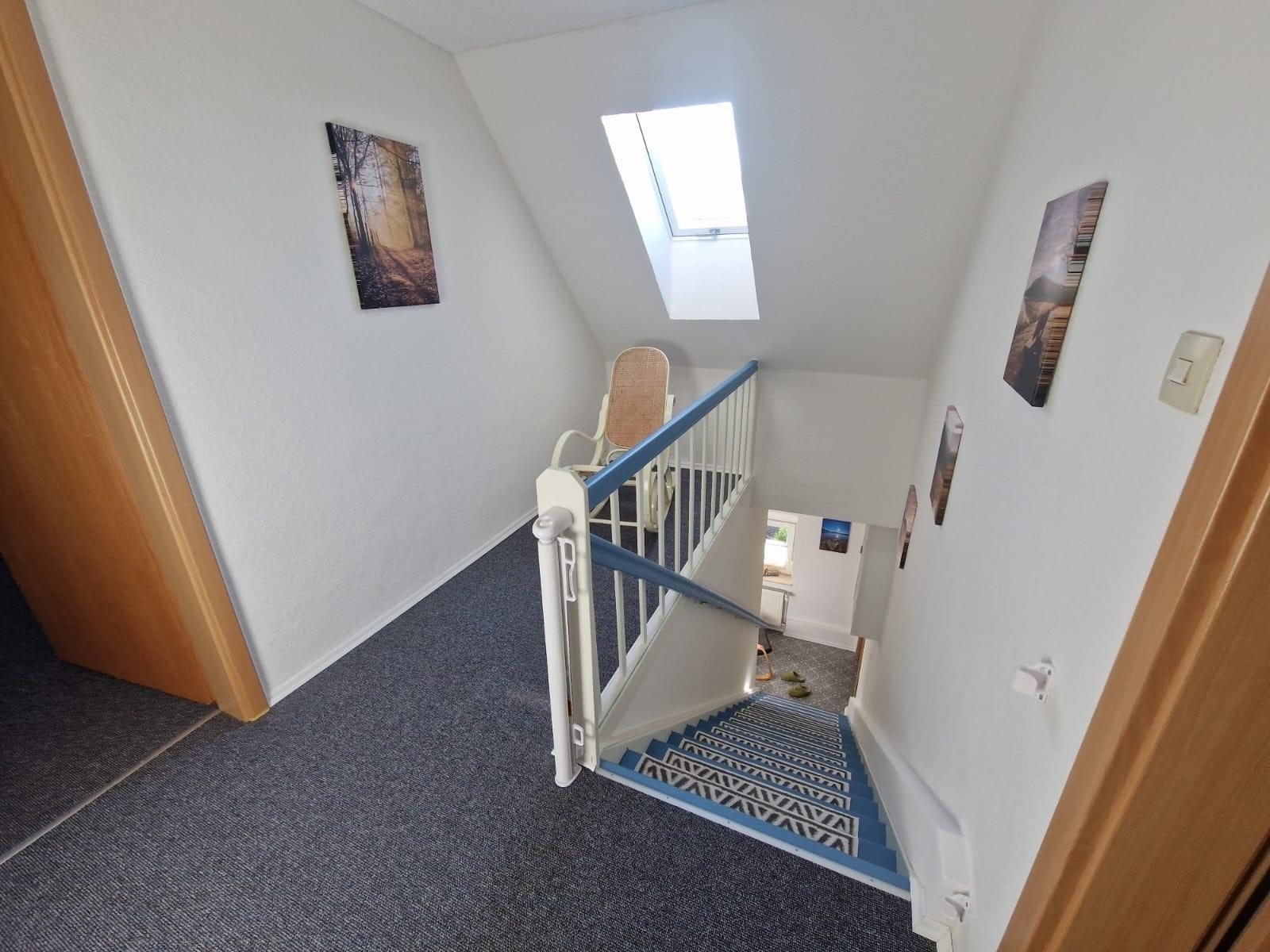 Im Obergeschoss befindet sich ein Schlafzimmer mit Doppelbett (180cm x 200cm) und ein Schlafzimmer mit zwei Einzelbetten (90cm x 200cm) und (140cm x 200cm). Und auf Wunsch kann auch ein Reisebett für Kleinkinder aufgestellt werden. So finden insgesamt bis zu 5 Personen bei uns Platz.