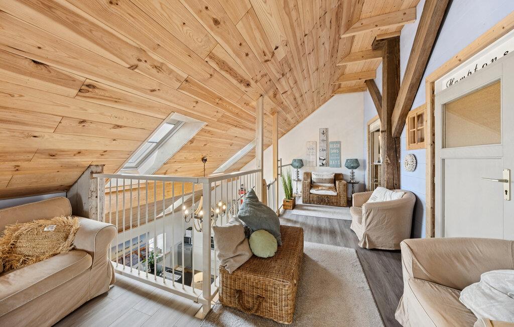 Willkommen in Ihrem stilvollen Beachhouse, einer liebevoll eingerichteten Ferienwohnung in einem denkmalgeschützten Gulfhof aus dem 19. Jahrhundert. Direkt an der Leda gelegen, umgeben von weiter Natur, erwartet Sie hier ein Ort voller Ruhe, Charme und Erholung. Die geräumige Wohnung befindet sich im ehemaligen Stalltrakt des historischen Bauernhauses und wurde mit viel Feingefühl renoviert. Helle Farben, maritime Elemente und hochwertige Möbel schaffen eine gemütliche Wohlfühlatmosphäre. Hier genießen Sie Ostfriesland von seiner schönsten Seite. In der großen, voll ausgestatteten Küche können Sie nach Herzenslust kochen, während im Wohnzimmer Gesellschaftsspiele und entspannte Abende auf dem Sofa auf Sie warten.