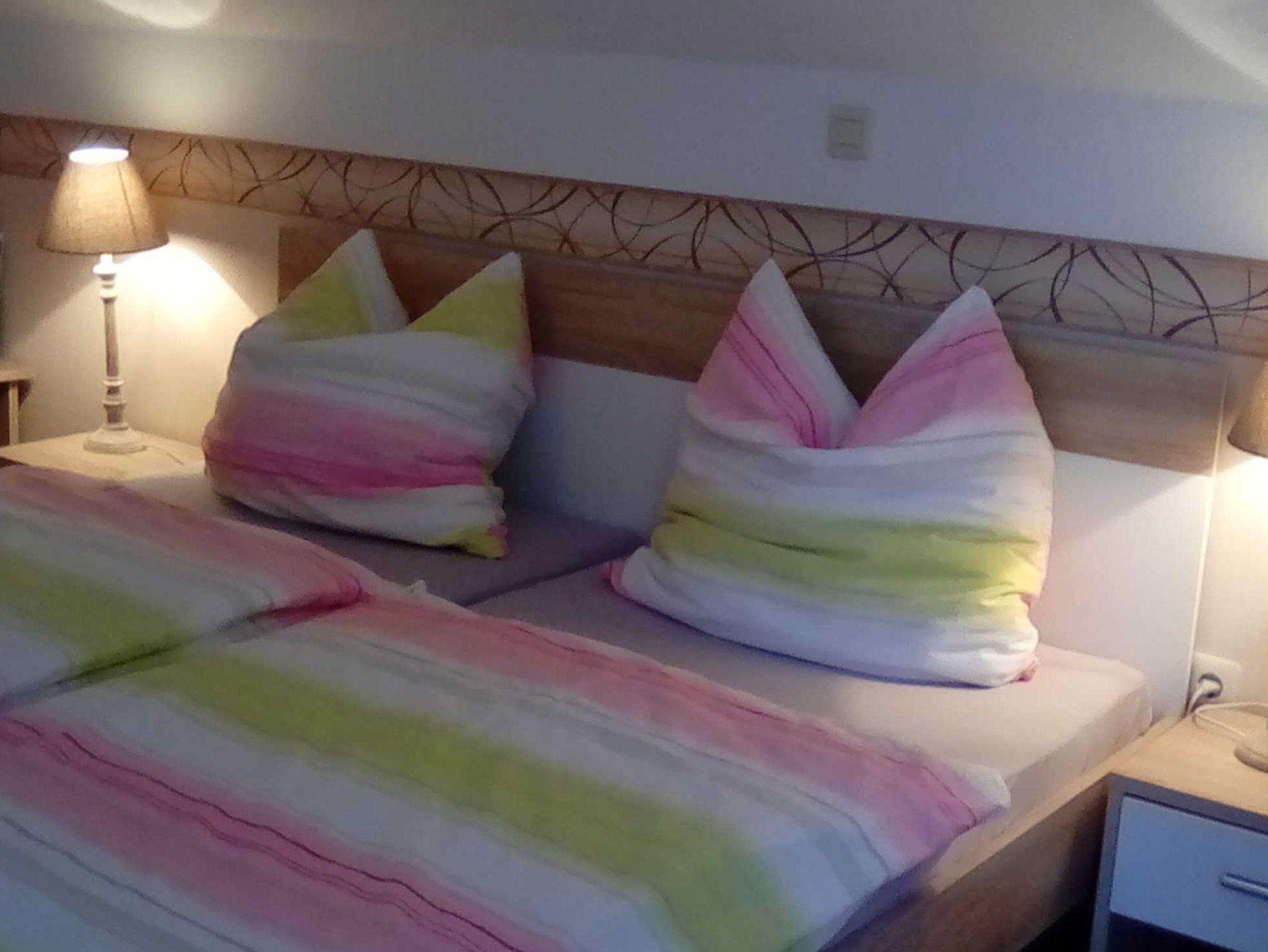 Gemütlich eingerichtete und voll ausgestattete Ferienoberwohnung in ruhiger und zentrumsnaher Wohnsiedlung. Separater Eingang. Komplett ausgestattete Wohnküche, Wohnzimmer mit SAT-TV und Radio, Dusche/Wanne/WC. Eigene Terrasse mit Gartenmöbel und Grill. Parkplatz und Spielplatz direkt am Haus. Handtücher und Geschirrtücher sollten vom Gast mitgebracht werden. Bettwäsche kann mitgebracht oder gegen eine Leihgebühr von 10,- Euro je Garnitur geliehen werden. Kinderhochsatuhl und Kinderbett sind vorhanden. Es handelt sich um eine Nichtraucherwohnung. Maximal zwei Haustiere sind erlaubt. Hundeplatz vorhanden. Pro Haustier wird einmalig bei der Anreise 25,- Euro berechnet. W-LAN ist vorhanden. Parkplatz am Haus. WLAN ist vorhanden.