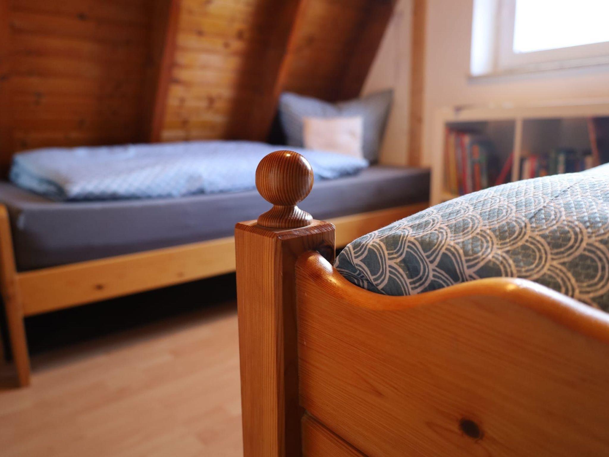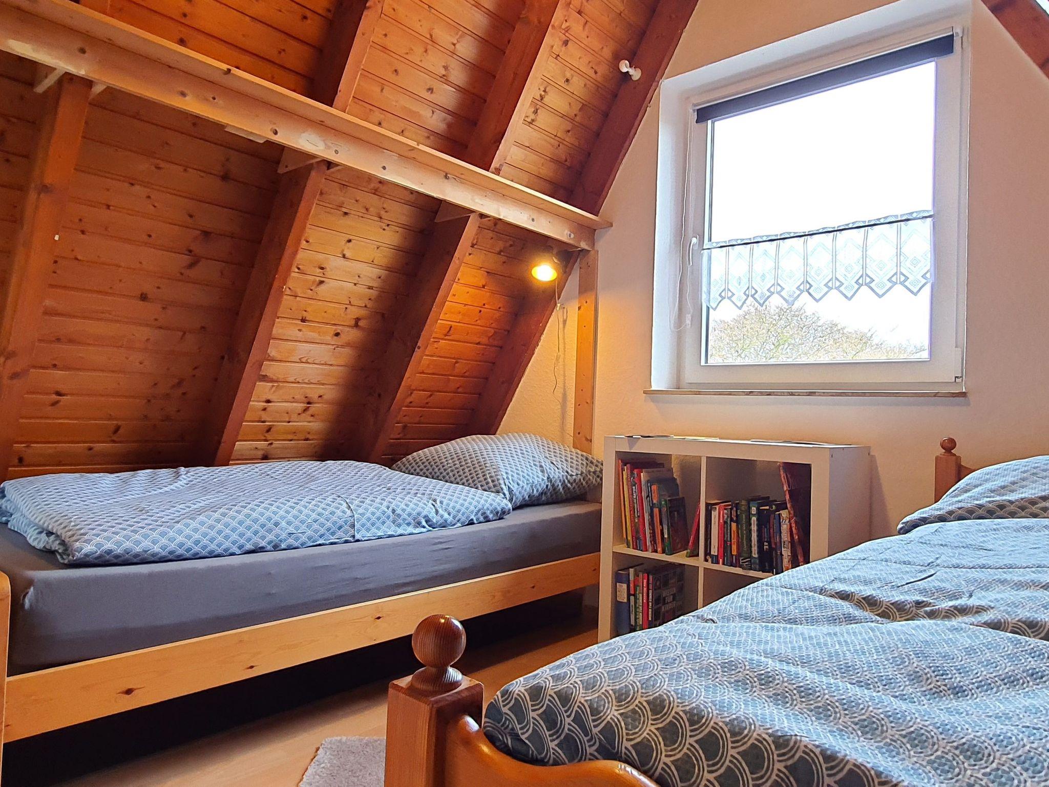 Das Haus verfügt über Platz für 4 Personen. Im Erdgeschoss befindet sich ein Tageslichtbad, eine voll ausgestattete Küche sowie ein heller freundlicher Wohn- und Essbereich mit Zugang zur Terrasse. Im Obergeschoss befindet sich ein gemütliches Schlafzimmer mit Doppelbett (1,40 m x 2,0 m), ein liebevoll eingerichtetes (Kinder-) Zimmer mit zwei Einzelbetten (0,90 m x 2,0 m) und ein WC.
