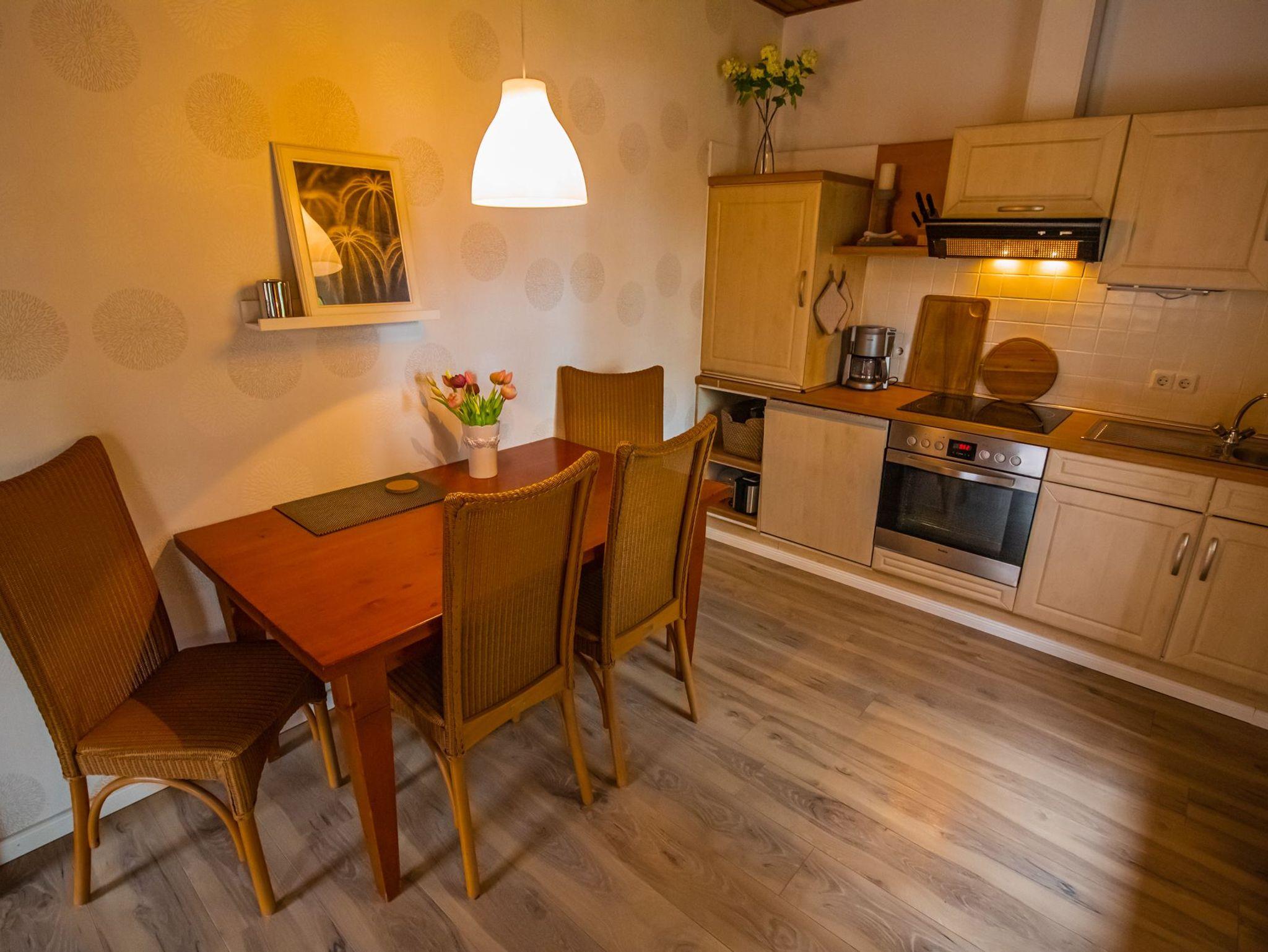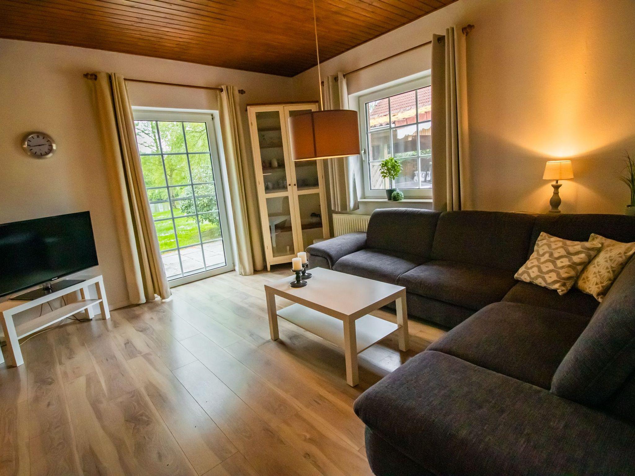 65 qm großes Ferienhaus für bis zu 4 Personen, 2 Schlafzimmer, Wohnzimmer mit angeschlossener Küche, Mikrowelle und Spülmaschine, Badewanne/Dusche/WC, Kabel-TV, Radio mit CD, Nichtraucherhaus, WLAN ist vorhanden, Hund pro Nacht 5,- Euro, weiterer Hund pro Nacht 3,- Euro, Bettwäsche und Handtücher sollten vom Gast mitgebracht werden, Garten mit Terrasse und Grillmöglichkeit.