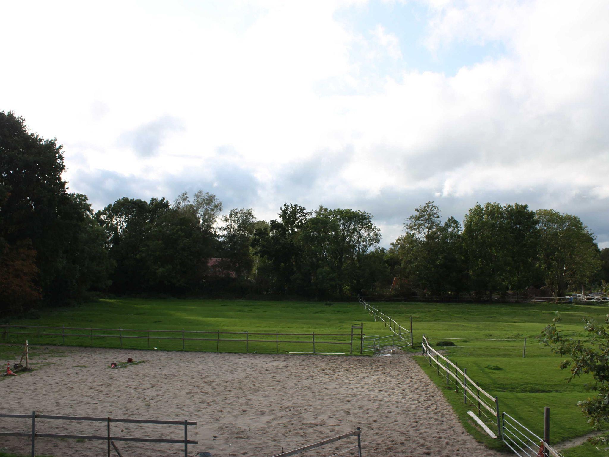 Historisches Bauernhaus in Detern mit großem Garten und Blick auf Storchennest und Pferdekoppel.