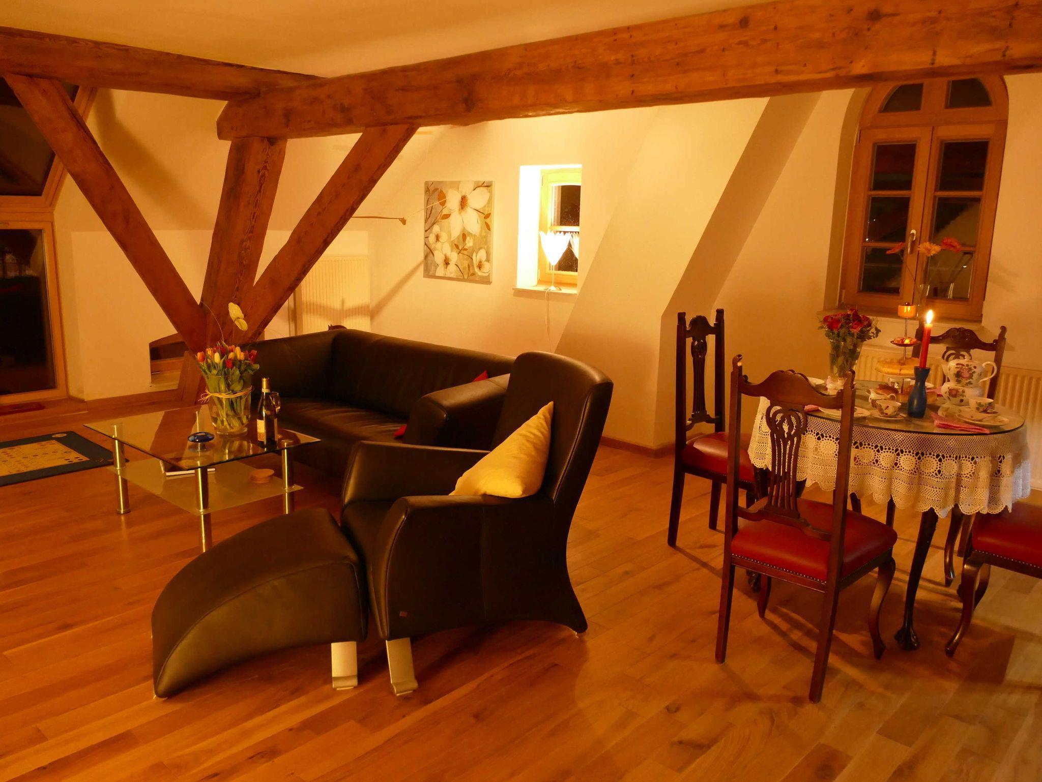 Den Charme der Geschichte des Gebäudes erleben Sie hautnah zwischen Originaltüren von 1900 und unter den historischen Balken.
