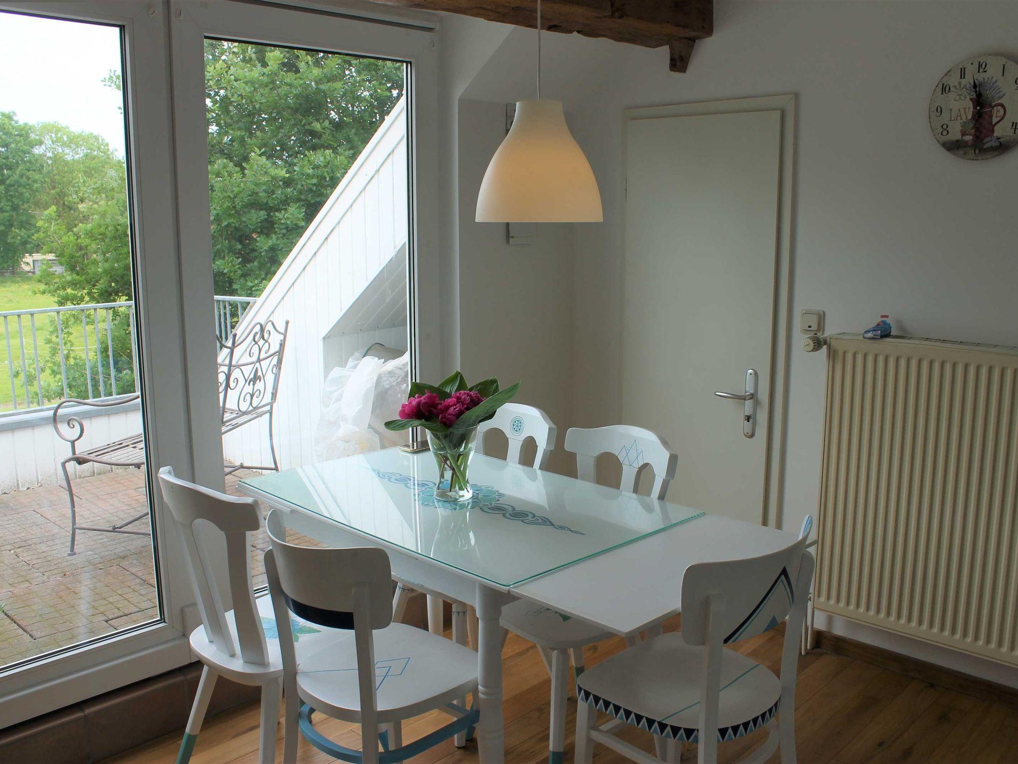 Ein herrlicher großer Bauerngarten umgibt das historische Gebäude, begrenzt durch einen breiten Graben - auch Gracht genannt - sowie einen reichen, alten Baumbestand z. T. über 100 Jahre alt. Mittendrin haben wir eine Schaukel für Kinder eingerichtet, auf der es sich in jedem Alter bis in luftige Höhe schwingen lässt. Der Garten besticht weiterhin je nach Jahreszeit durch Obstbäume, herrlich blühende Rhododendronbüsche in prächtigen Farben, einer Magnolie, einem Meer von Buschwindröschen, Osterblumen, Schneeglöckchen, Krokussen, Gänseblümchen und Löwenzahn. Rosenbeete zieren den Eingangsbereich. Gerne dürfen sich unsere Gäste an den Schnittblumen und Obstbäume frei von Schadstoffen bedienen. Der Garten lädt ein zum Spielen und zum Lauschen der Vogelstimmen, die sich in nächster Nähe in unterschiedlichem Tonlagen „unterhalten“.ein. Abends fasziniert bei klarem Himmel der Sonnenuntergang am Himmel inmitten des beeindruckenden ostfriesischen Wolkenhimmels. Das alles können sie beim Grillen auf der Terrasse beobachten und hören. Tagsüber lässt sich die Friesische Freiheit hautnah auf Radwandertouren erleben, wenn Sie Ihren Blick streifen lassen über die grünen Wiesen bis zum Horizont.
