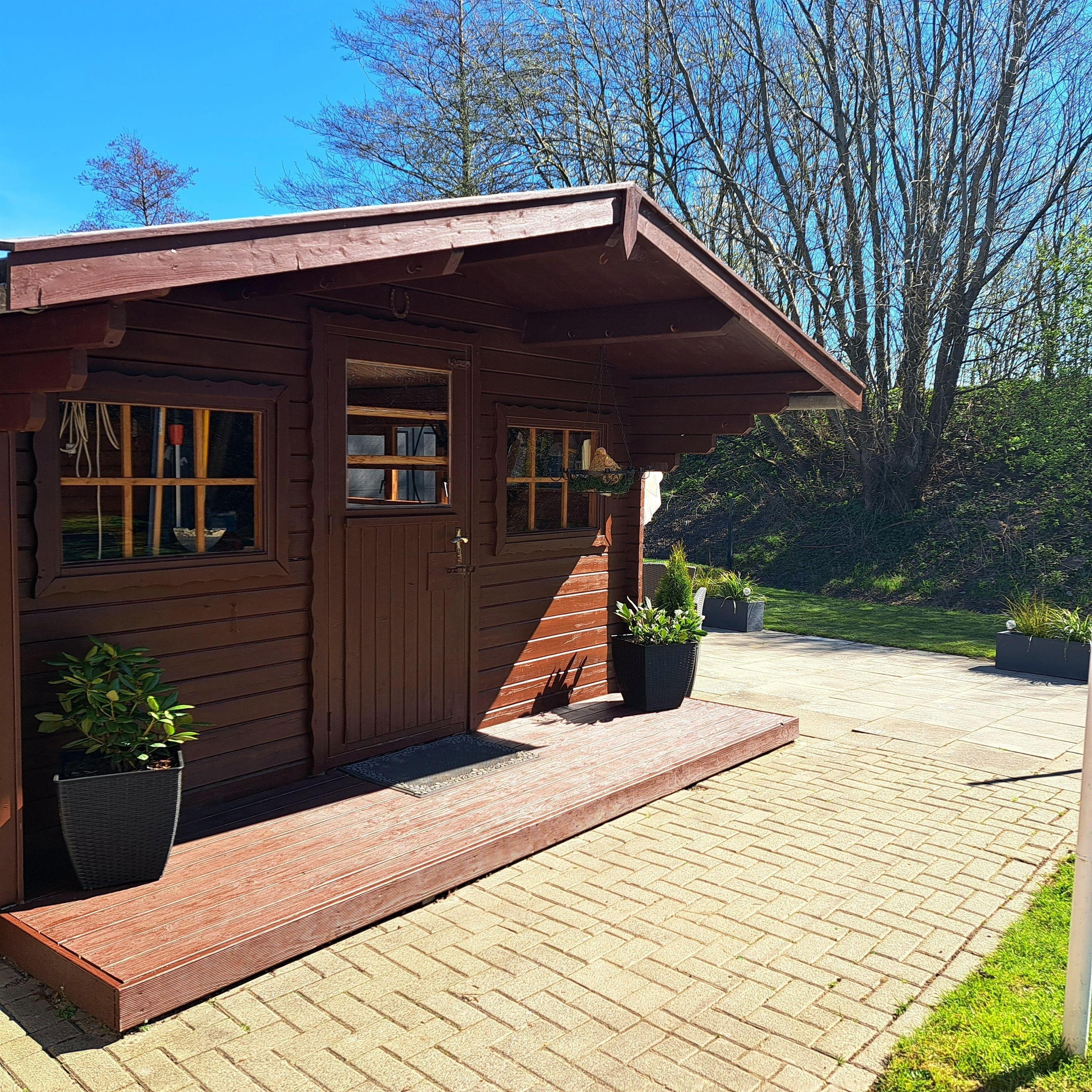 Auf den beiden großen Terassen stehen Gartenmöbel ,Liegen ,ein Strandkorb sowie eine Feuerschalle für Sie bereit .Für Ihre Fahrräder gibt es ein Gartenhaus und ein Carport für Ihr Auto sowie weitere kostenlose Parkplätze .