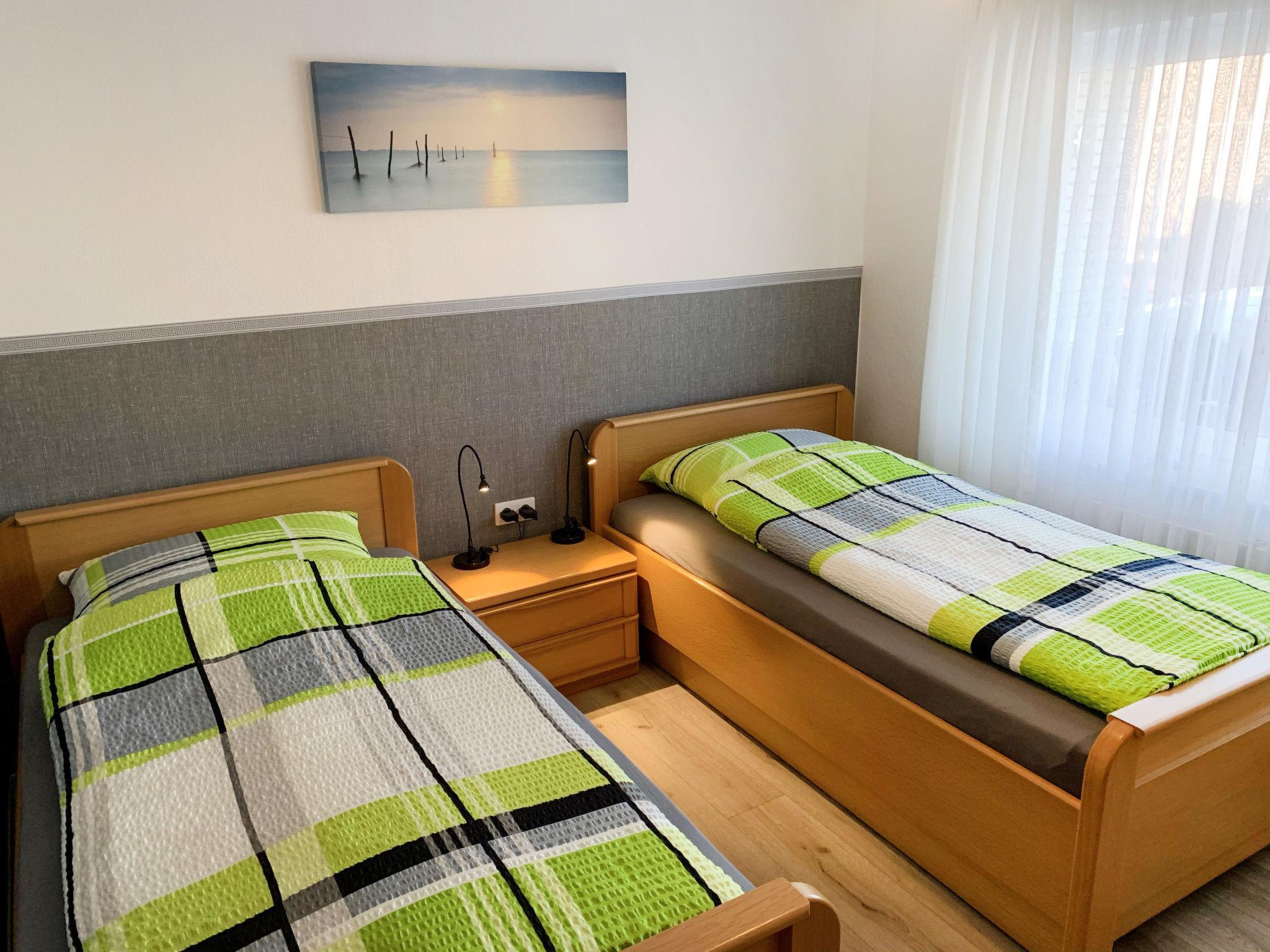 "Christine", 3-Zimmer-Wohnung 55 m2, im Erdgeschoss. Geschmackvoll und gemütlich eingerichtet: Wohnzimmer mit Sat-TV (Flachbildschirm), Radio, CD und DVD. 1 Zimmer mit 2 Betten (100 cm, Länge 200 cm). 1 Zimmer mit 2 Betten (90 cm, Länge 200 cm). Ausgang zur Terrasse. Küche (4 Kochplatten, Backofen, Geschirrspüler, Toaster, Wasserkocher, Mikrowelle, elektrische Kaffeemaschine) mit Esstisch. Dusche/WC. Terrasse überdacht. Terrassenmöbel. Zur Verfügung: Internet (Wireless LAN, gratis). Bitte beachten: Nichtraucher-Unterkunft. Eigener Eingang, Rauchmelder. Die Vermietung erfolgt ausschliesslich zu touristischen Zwecken. Monteure als Mieter sind nicht erlaubt.