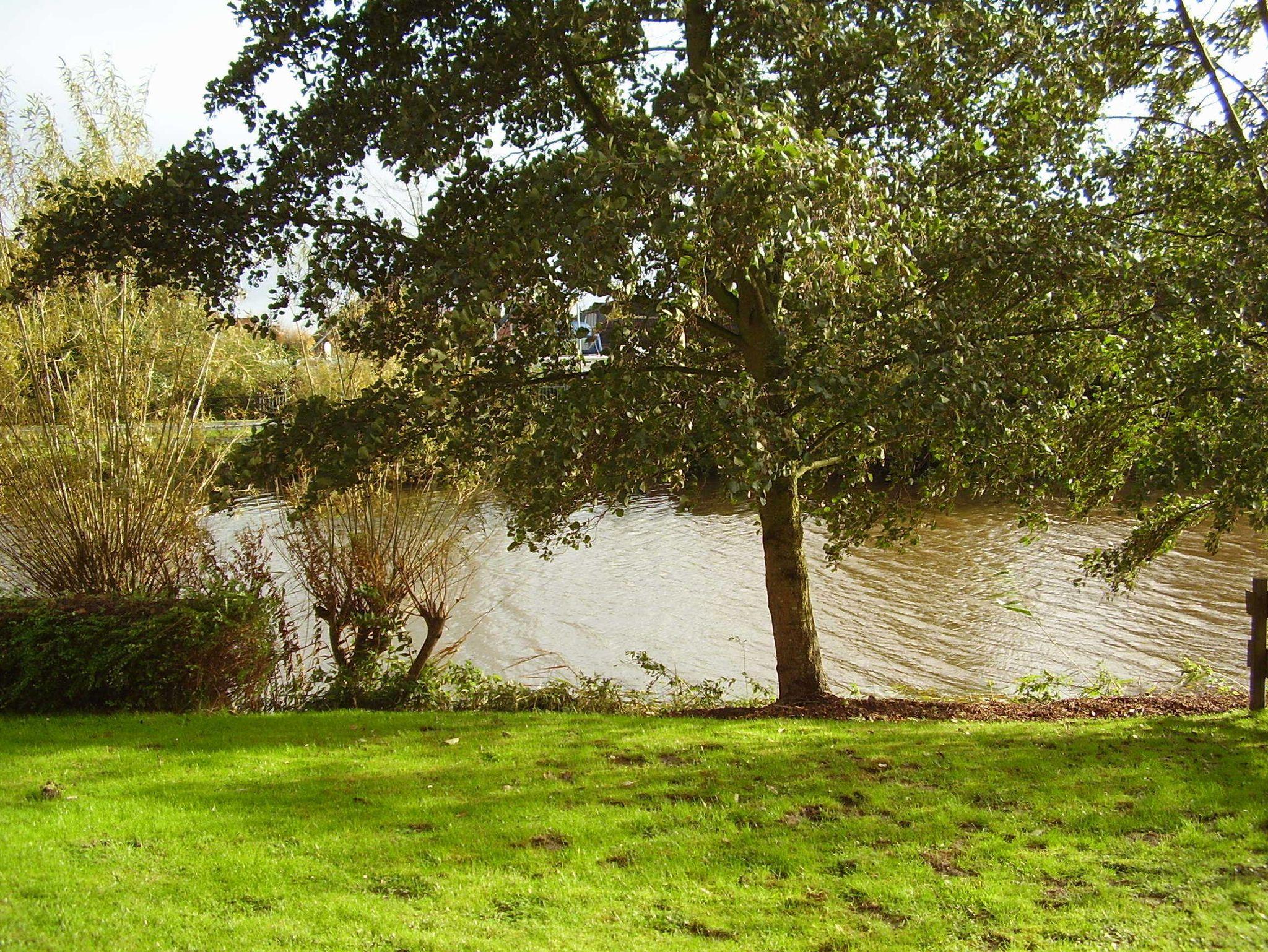 Überdachte Terrasse und Wiese in Südlage direkt zum Siel. Angeln vom Grundstück aus möglich.