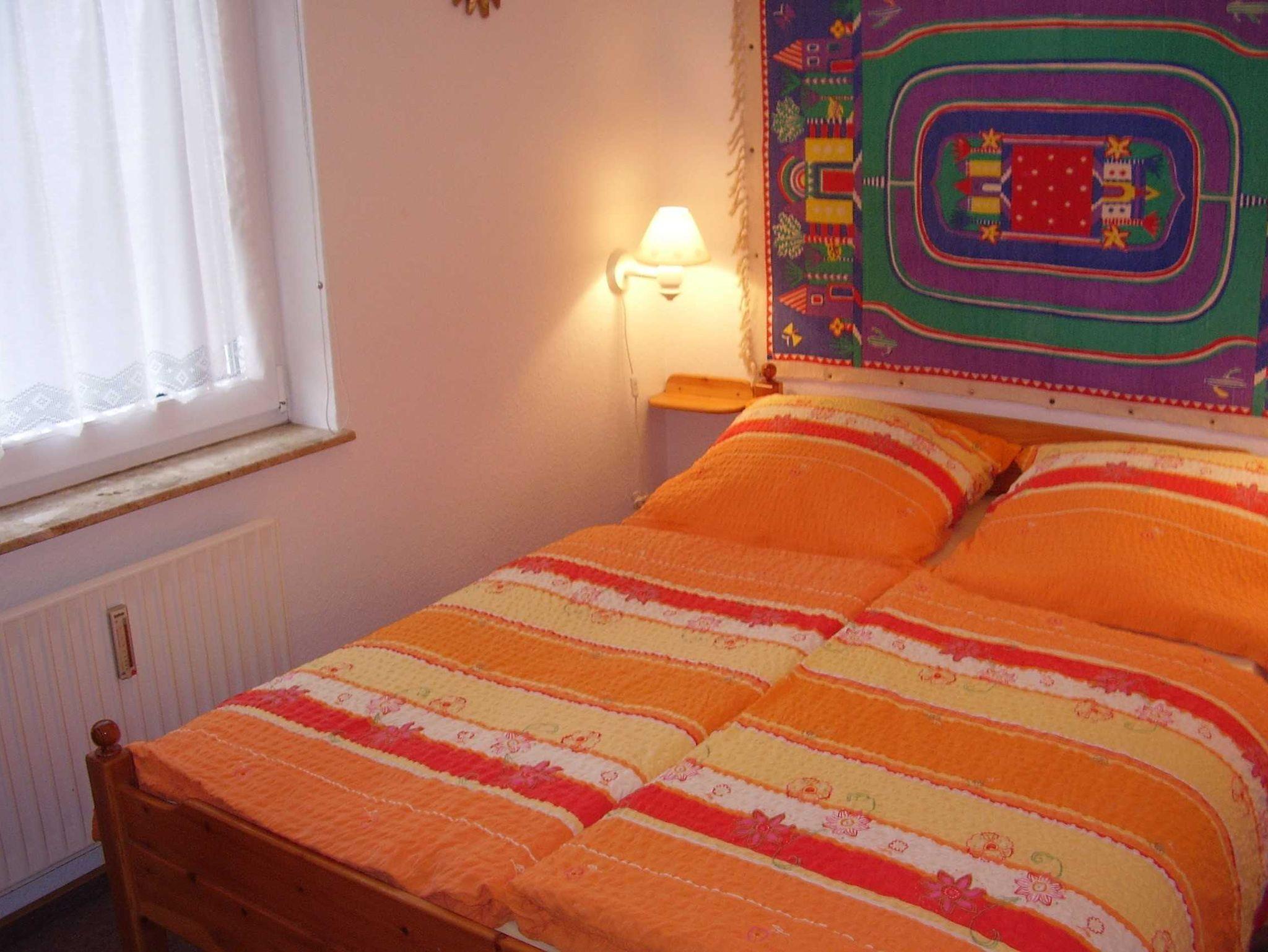 Ein Schlafzimmer mit Doppelbett (160x200). Ein Schlafzimmer mit Einzelbett.