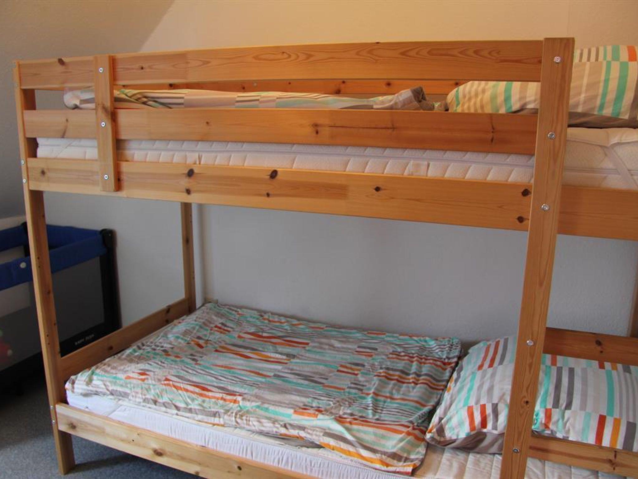 In der gemütlichen Doppelhaushälfte können Sie mit der ganzen Familie einen tollen Urlaub verbringen, da hier 6 Personen und ein Baby Platz finden. Im Erdgeschoss befinden sich ein Wohn-Essbereich, zum gemütlichen zusammen sitzen, eine separate Küche und ein Gäste WC. Im Wohnbereich mit Couch, TV, DVD-Player und einem Essbereich, befindet sich außerdem der Zugang zur Terrasse auf der Sie mit dem vorhandenen Grill schöne Abende verbringen können. Der Garten läd Ihre Kinder zum schaukeln und spielen. Über eine Wendeltreppe gelangen Sie in das erste Obergeschoss. Hier befinden sich das Badezimmer (Dusche/WC) und drei Schlafzimmer. Alle Schlafzimmer haben einen Kleiderschrank. Eines hat ein Doppelbett, das andere zwei Einzelbetten und das Dritte ein Etagenbett und ein Kinderreisebett. Für die ganz kleinen Gäste gibt es auch ein Kinderhochstuhl, Schaukelpferd und eine Kinderwippe.