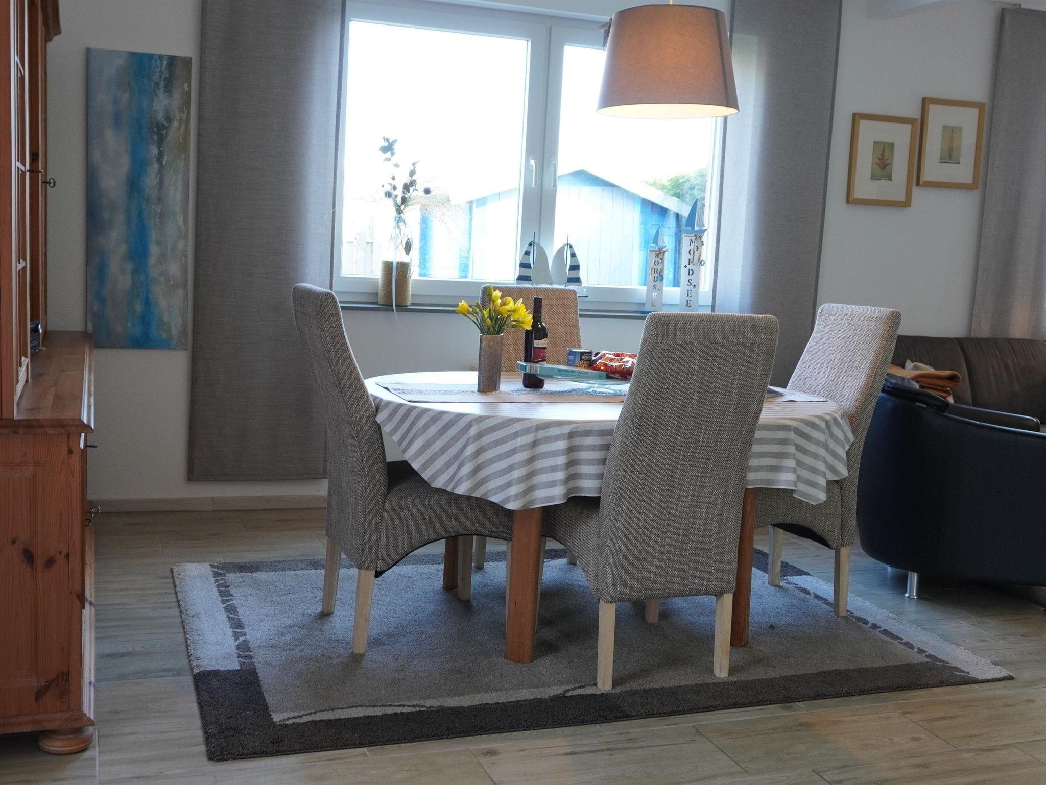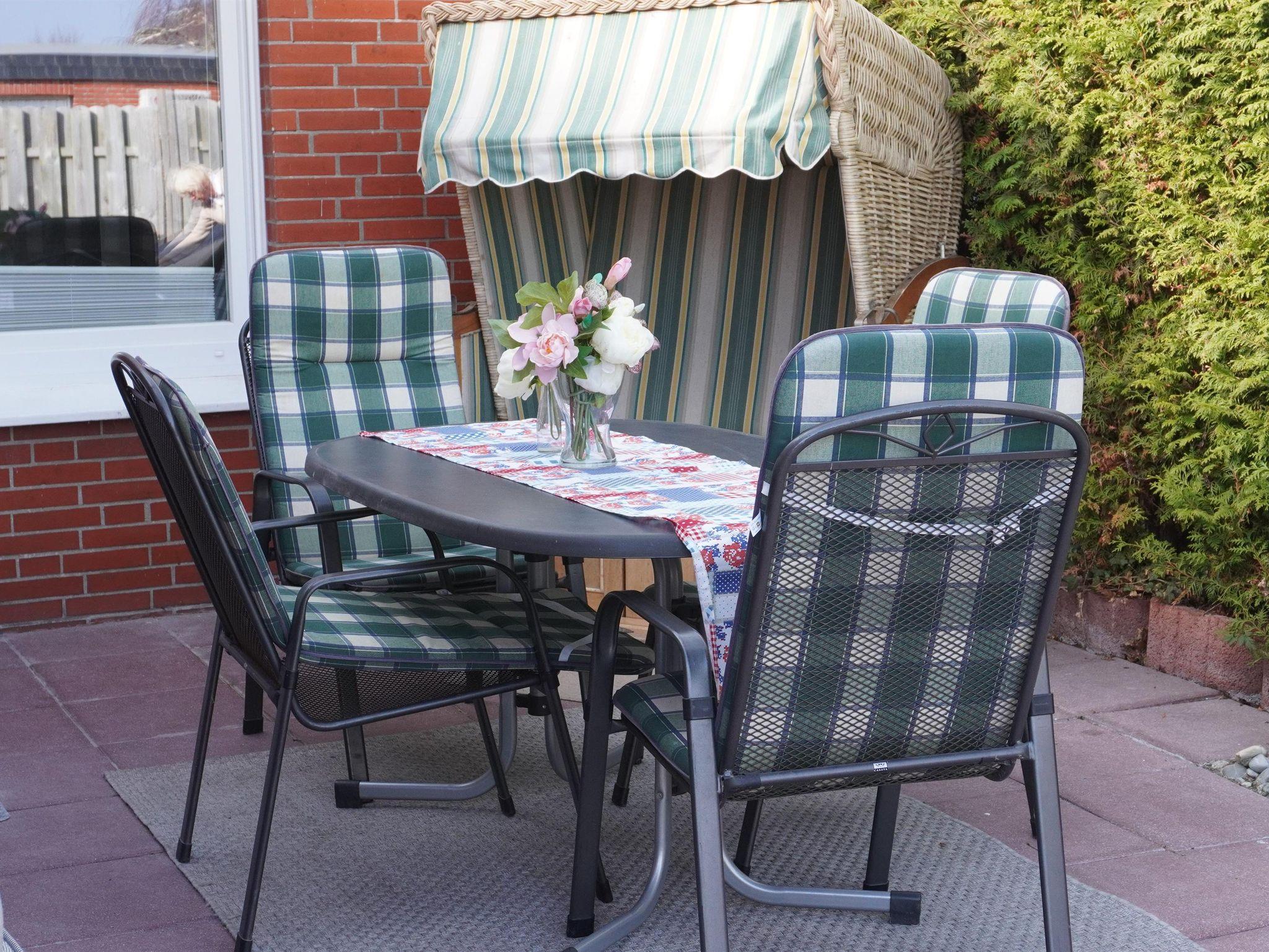 In ruhiger Sackgassenlage und nur ca. 300 m von der Nordsee entfernt können Sie die Ruhe genießen. Ihr PKW findet Platz direkt am Haus und zum morgentlichen Brötchen holen, steht Ihnen ein Fahrrad mit Körbchen zur Verfügung. Im blickgeschützten, eingezäunten Garten erwartet Sie eine überdachte Terrasse mit Gartenmöbeln und Strandkorb.Hier lässt es sich auch bei wechselhaften Wetter entspannen. Für unseren kleinen Gäste gibt es hier einen Sandkasten.