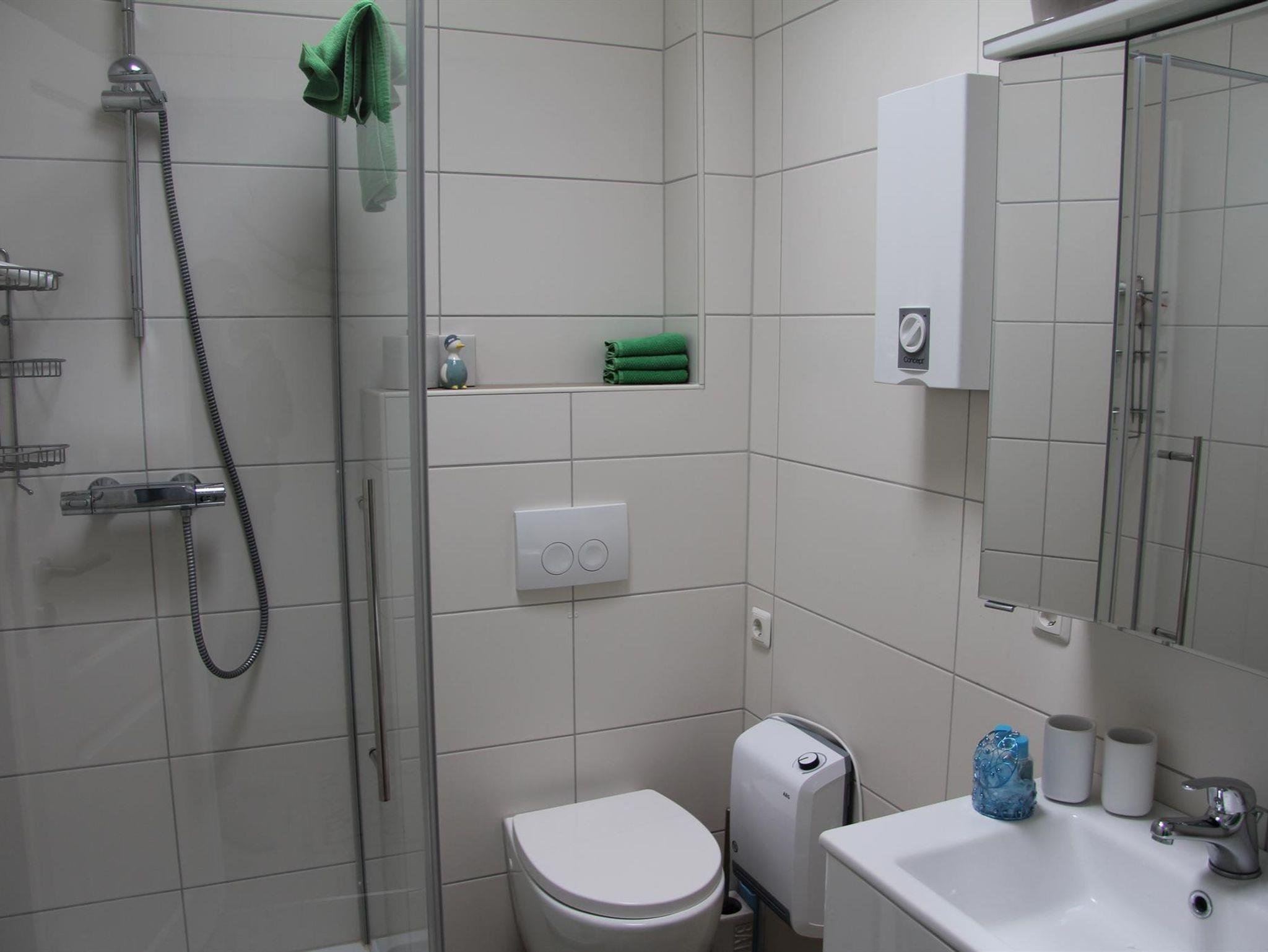 Ein modernes und neuwertiges Bad mit Oberlicht Dusche, WC und Waschbecken rundet Ihr Wohlbefinden ab.