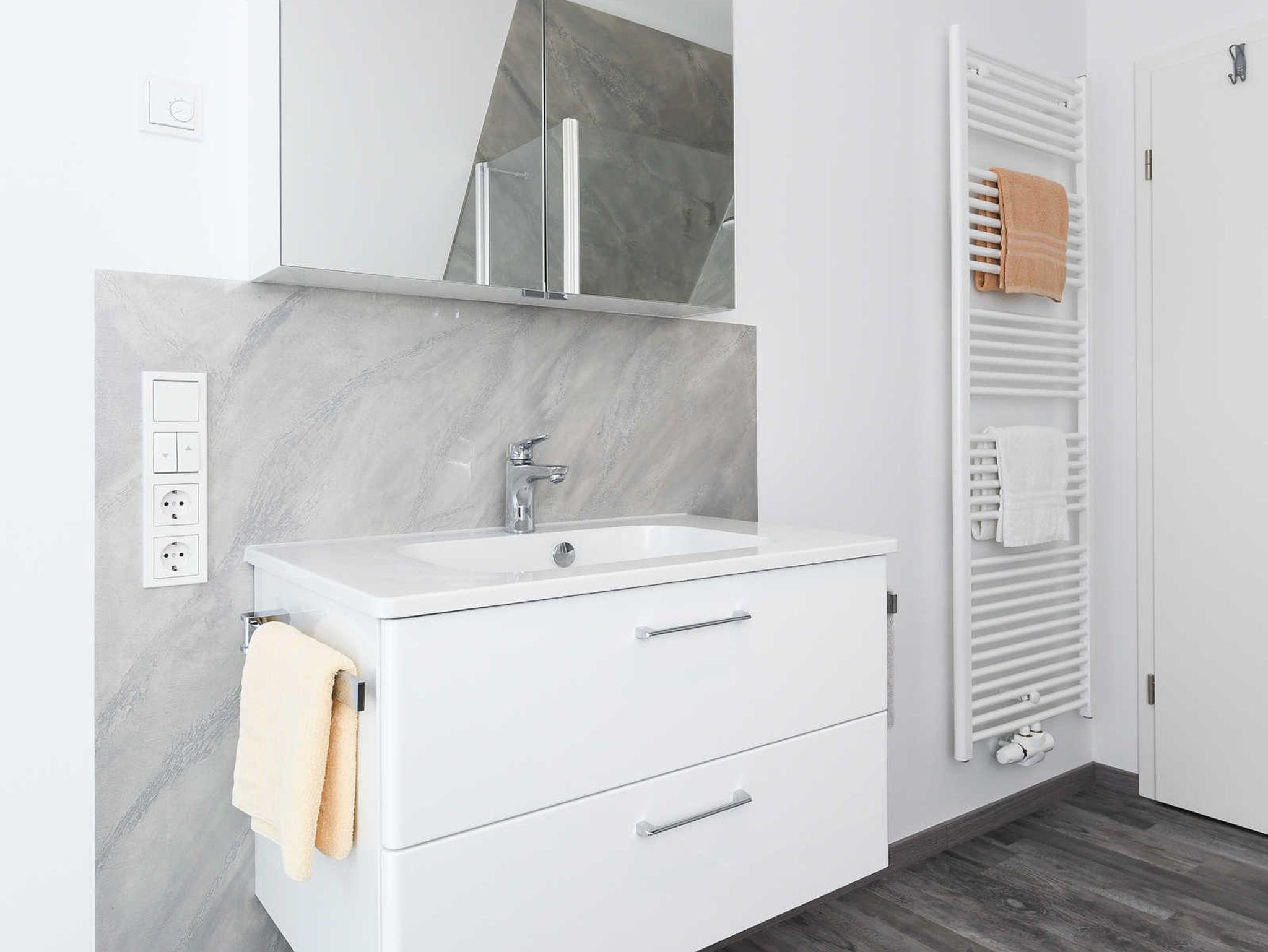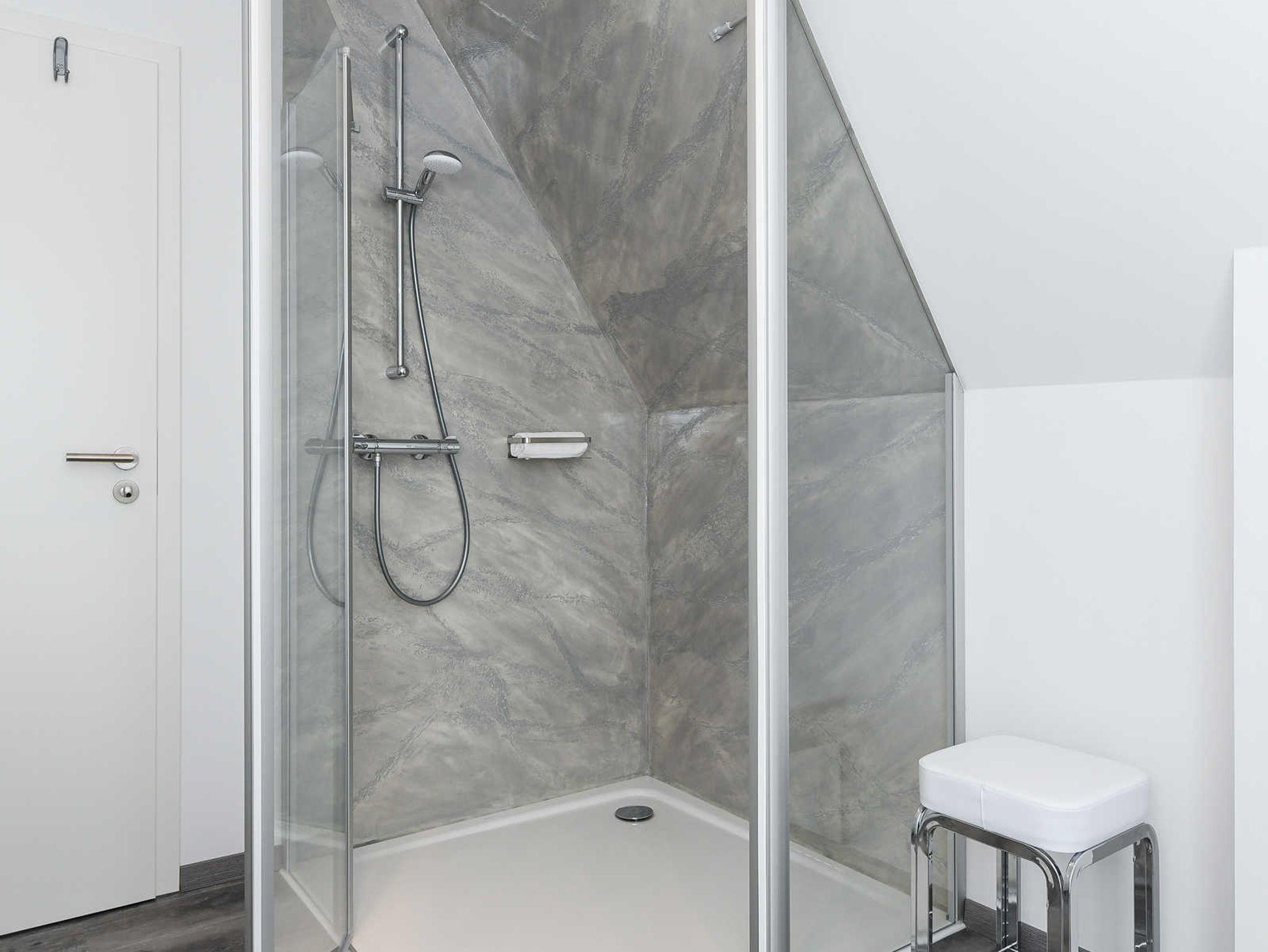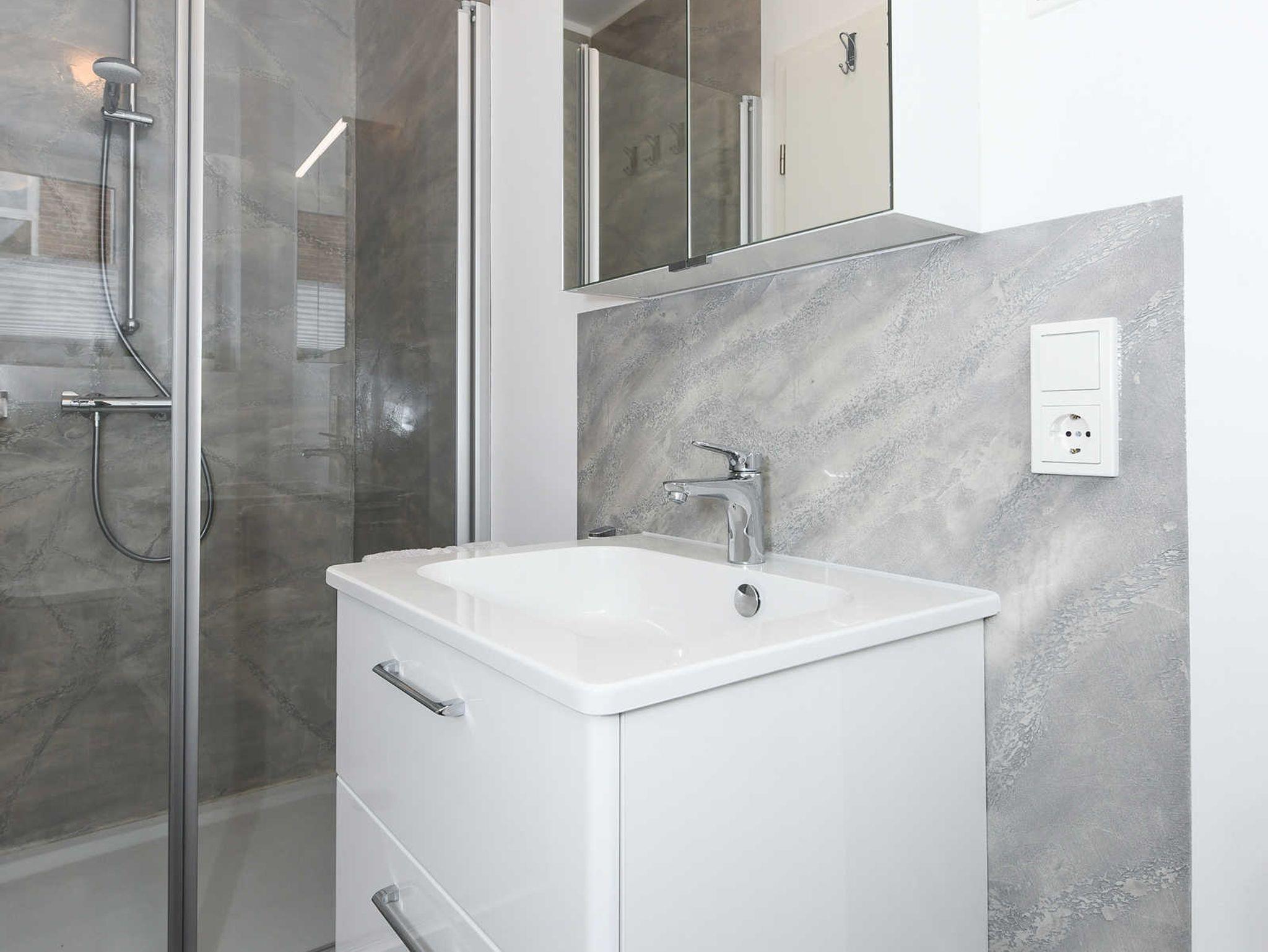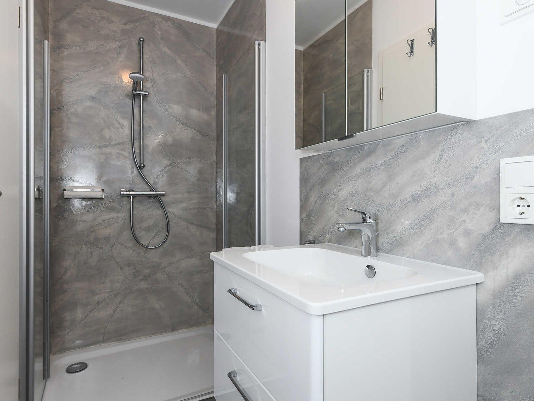 zweites Badezimmer mit Dusche, Waschtisch und WC