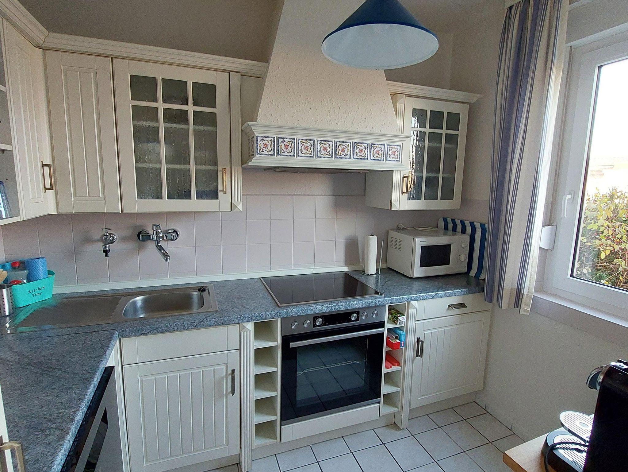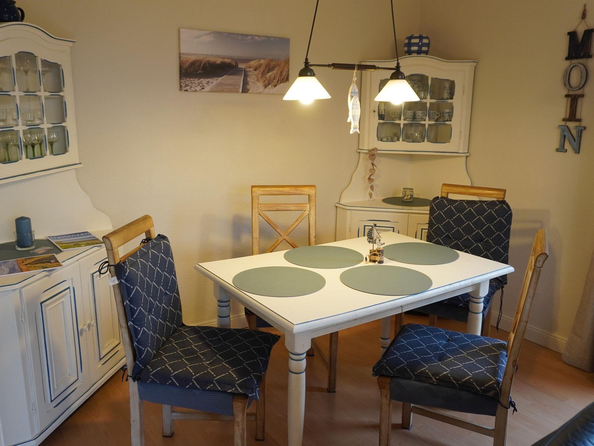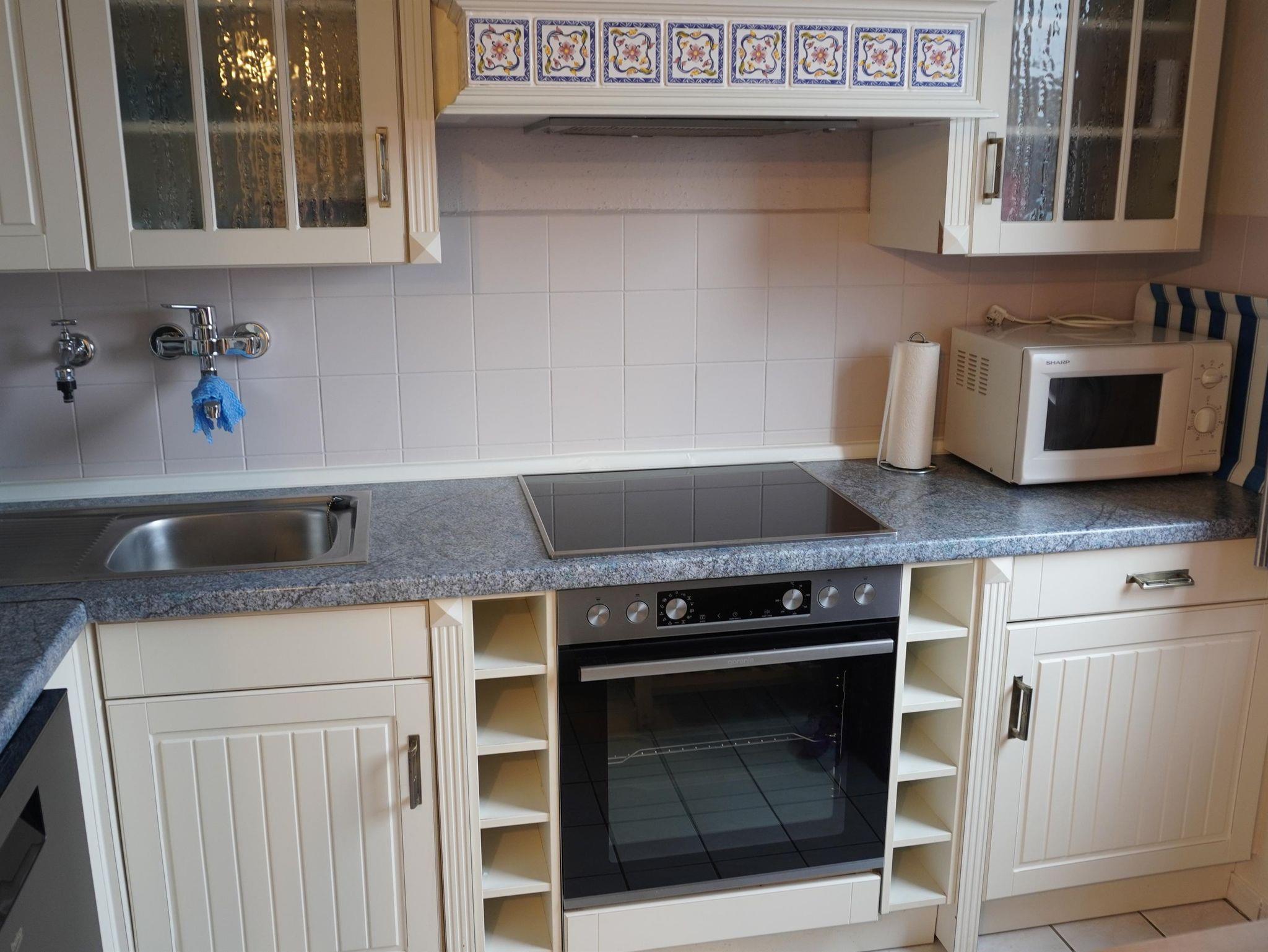 Im Ferienhaus finden Sie eine vollausgestattete Küche, unter anderem mit Spülmaschine, Mikrowelle, sowie Kühlschrank mit integriertem Gefrierfach. Ein Wohn- Essbereich mit Fernsehgerät lädt zu gemütlichen Stunden ein. Als Schlafdomizile werden Sie ein Zimmer mit Doppelbett ( 1,80 x 2,00 m mit getrennten Matratzen ) und eins mit zwei Einzelbetten ( 0,90 x 2,00 m )vorfinden. Das Bad ist modern und barrierefrei gestaltet. Es verfügt ,über ein Oberlicht. WLAN kann von unseren Gästen kostenfrei genutzt werden.